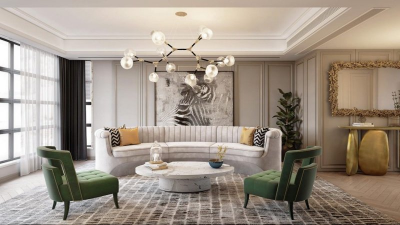 В тренде также акцентное освещение. Люстры в скульптурных формах, подсветка мебели и ниш, декоративные настенные светильники подчеркивают стиль интерьера.