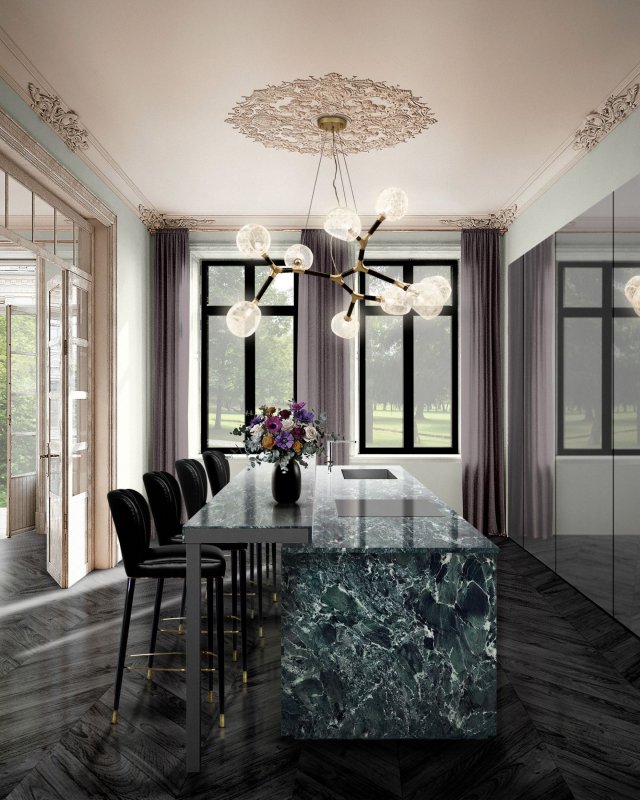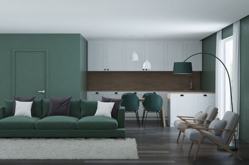 Многие дизайнеры интерьеров сходятся во мнении, что зеленый – основной цвет года. Причем не насыщенный сочный оттенок, а его приглушенные тона – изумрудный, оливковый, мятный, будут стабильно востребованы. Они хорошо сочетаются с классической палитрой (бежевым, серым) и контрастными темными акцентами (глубоким зеленым или черным).