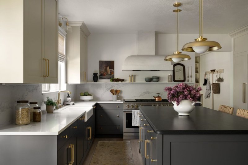 Актуальны темные глубокие оттенки. Это может быть графитовый серый или зеленый, в сочетании с теплыми текстурами дерева или бронзы.