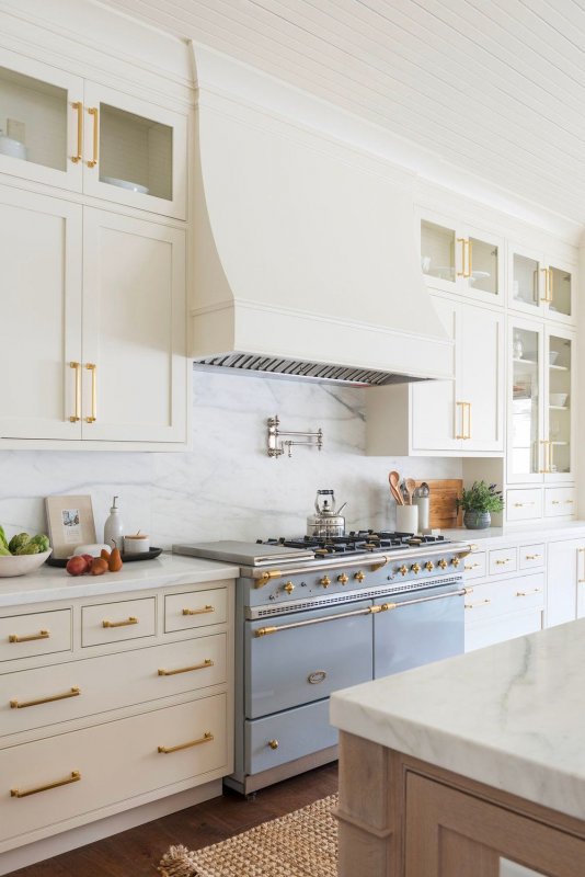Вместо сплошных фасадов используются стеклянные витрины или открытые полки, которые позволяют демонстрировать красивую посуду или аксессуары.