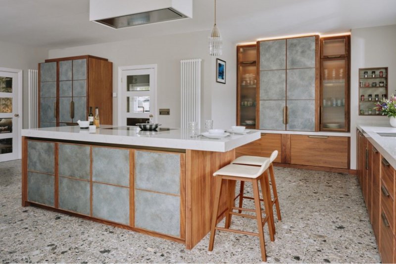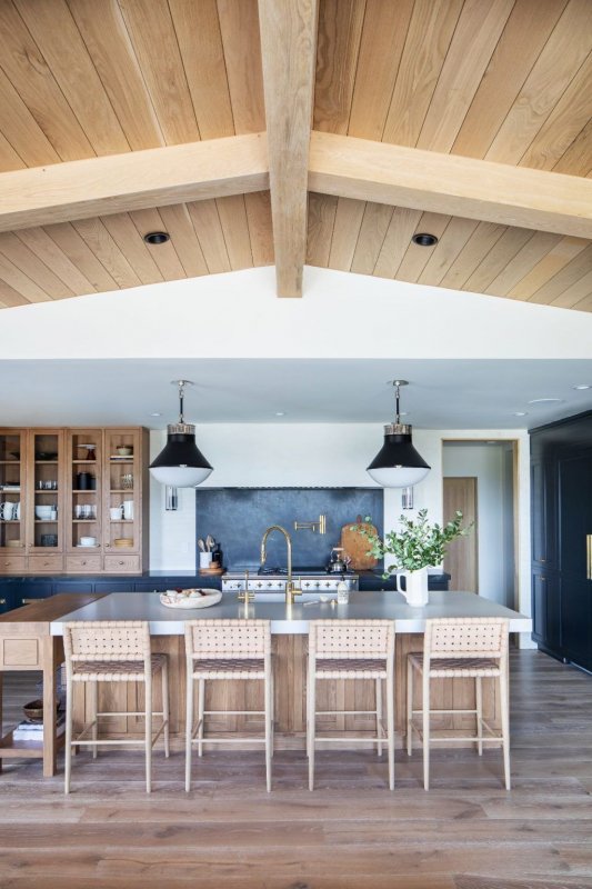 Кухонный остров становится больше и функциональнее, объединяя зону готовки, обеденный стол и рабочее место.