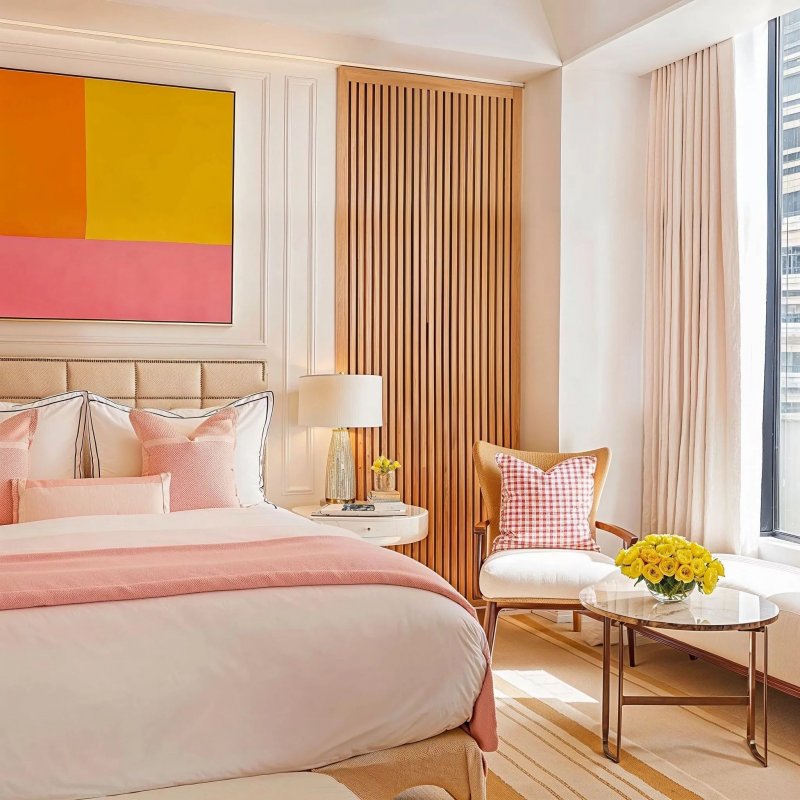 Нежный, пастельный розовый гармонично смотрится в текстиле и акцентах.