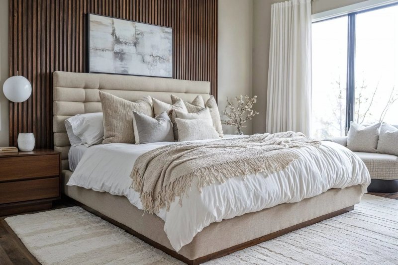 В спальне основной акцент сделан на создание пространства для полноценного отдыха и восстановления, где каждая деталь работает на комфорт.