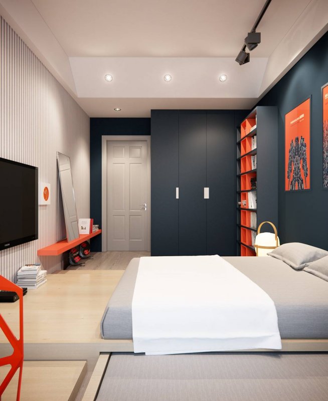 Отбросьте стереотип, что для современного дизайна комнаты для молодого человека нужно выбирать «мужские цвета» – сдержанные и преимущественно темные.