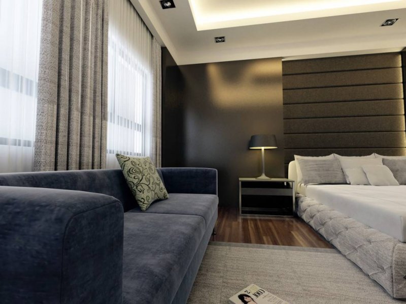 Дизайн спальни для молодого парня должен располагать к отдыху. В квартире студии зону сна можно выделить перегородкой или ширмой, другим напольным покрытием (приятным для босых ног) и освещением. В отдельной комнате в интерьере спальни для парня можно сделать обои теплых тонов с невыразительным орнаментом.