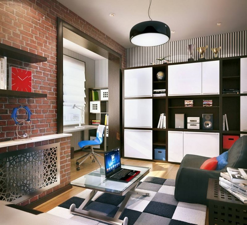 Как уже было сказано в предыдущем разделе, дизайн квартиры для парня должен включать в себя рабочую зону. В студенческом возрасте она нужна для учебы, а когда человек работает, то с большой вероятностью бывают периоды, когда работу приходится брать домой, а выполнять ее за обеденным столом или на диване неудобно.