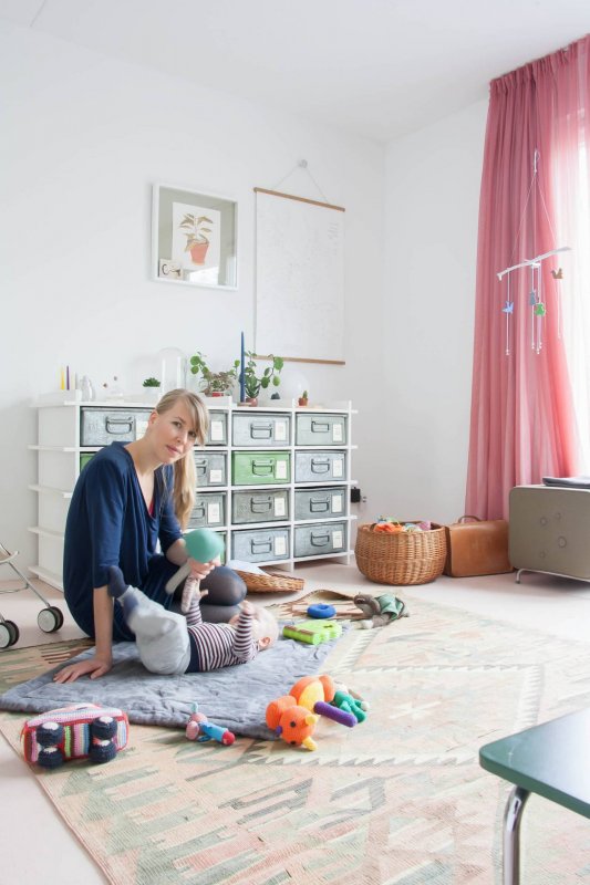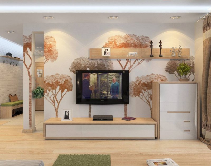 Из интерьера однушки для семьи с ребенком формируются две комнаты таким образом: