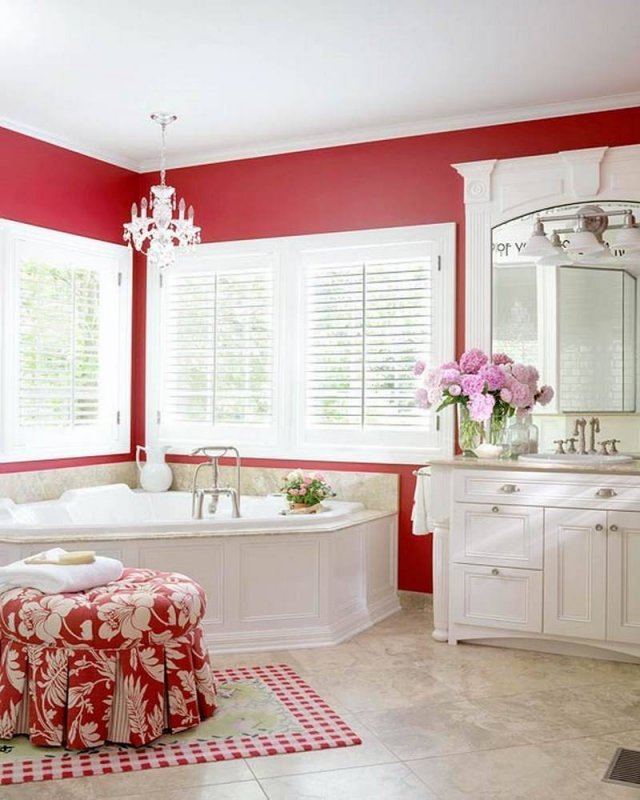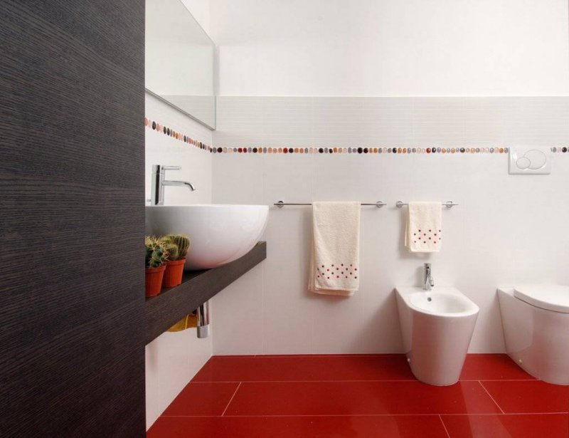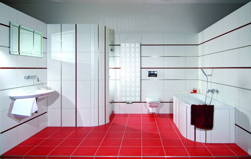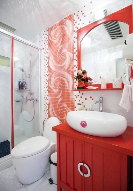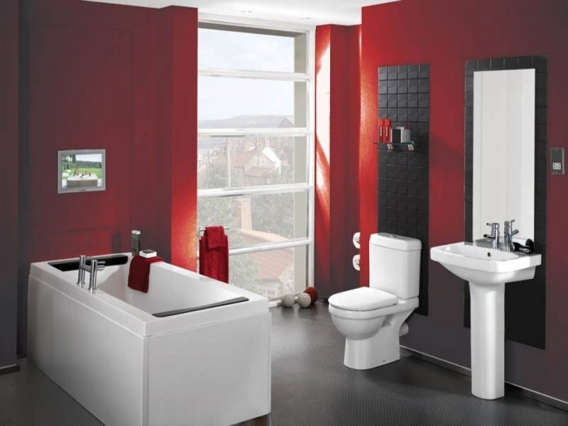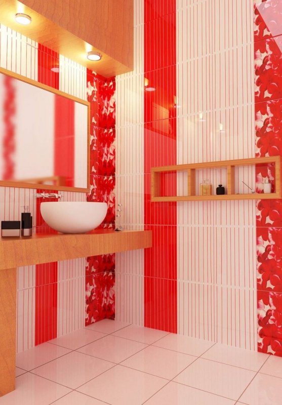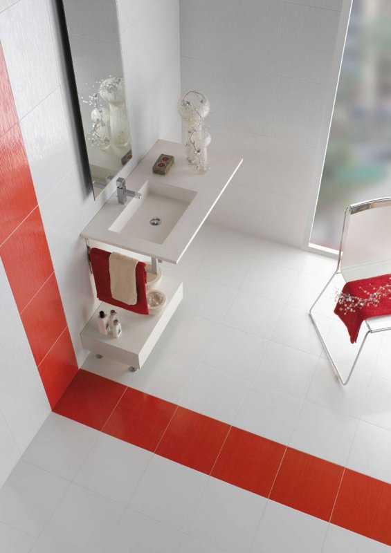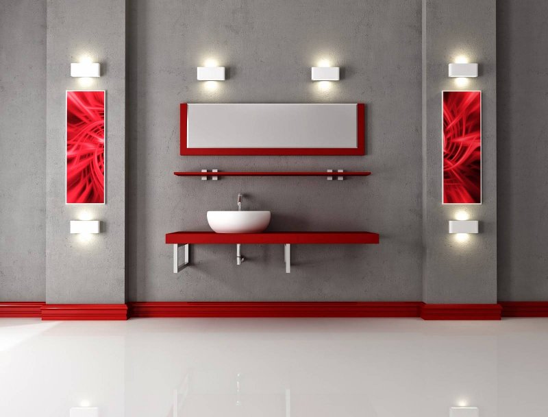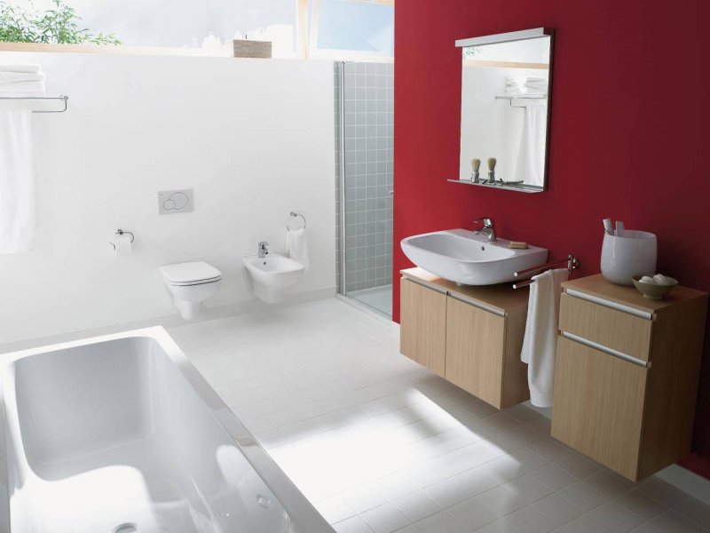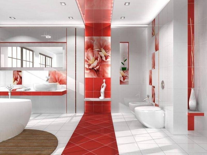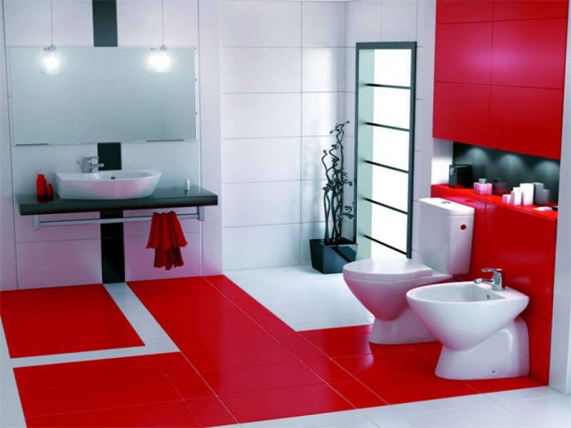 Рассмотрим основные варианты сочетаний с красным при оформлении ванной комнаты.