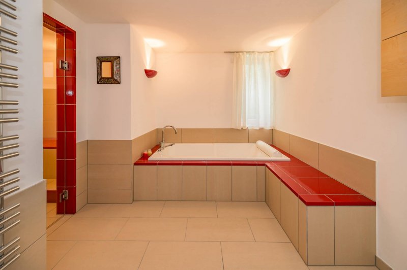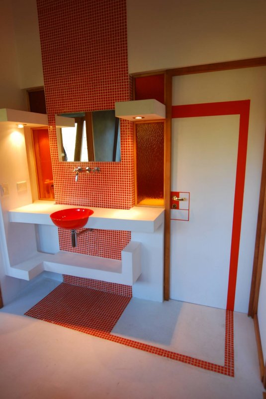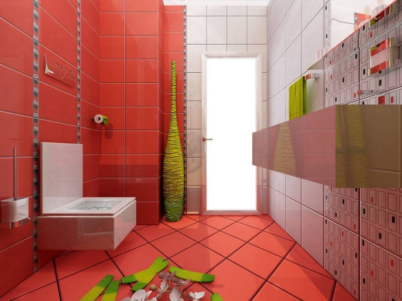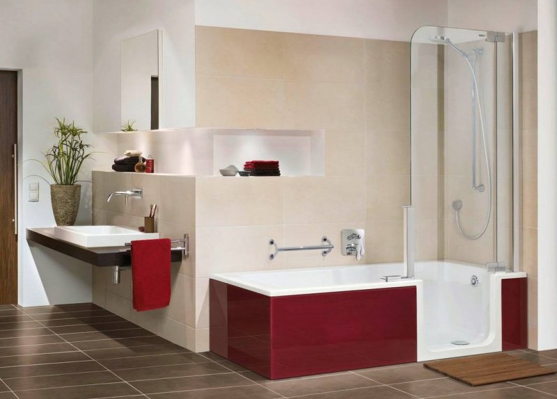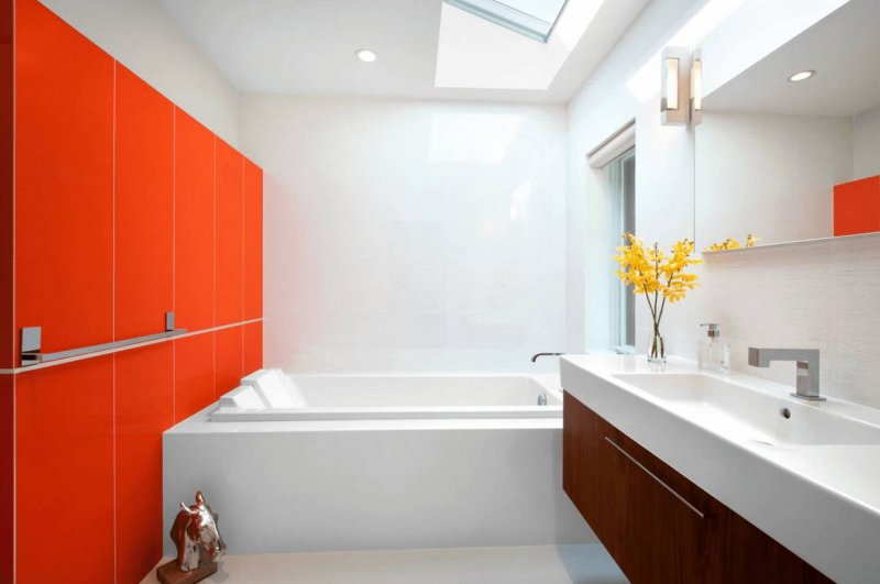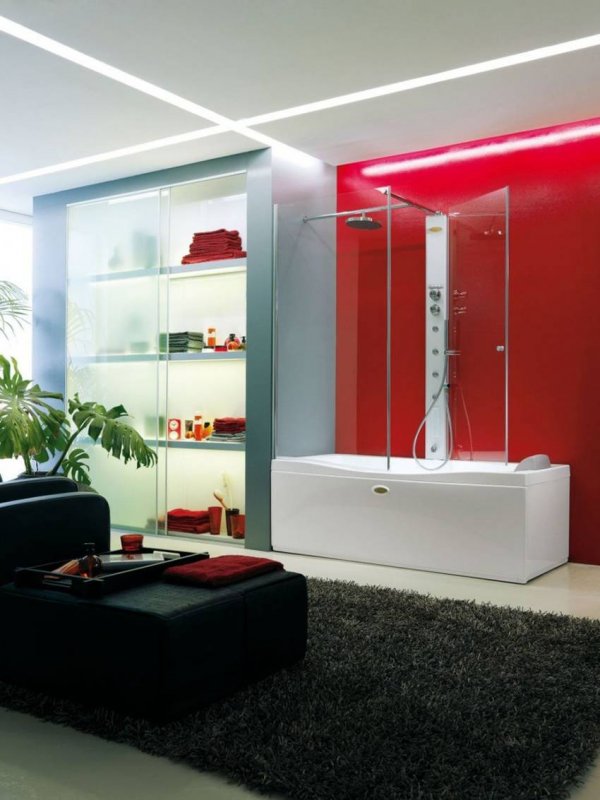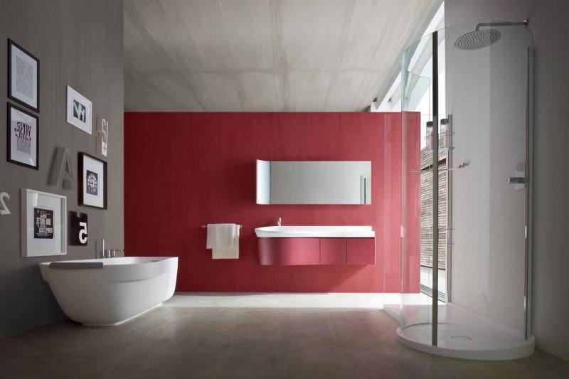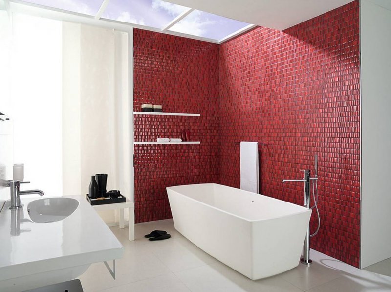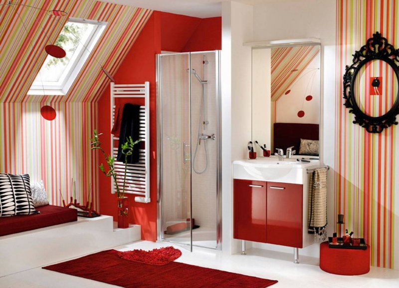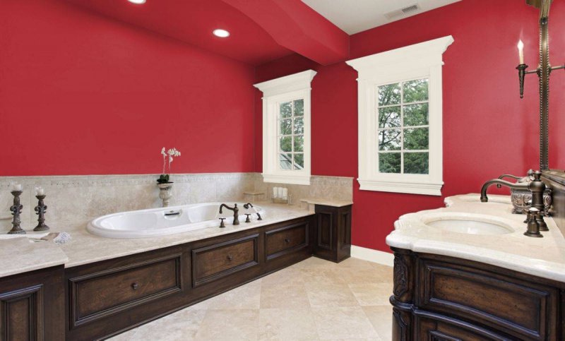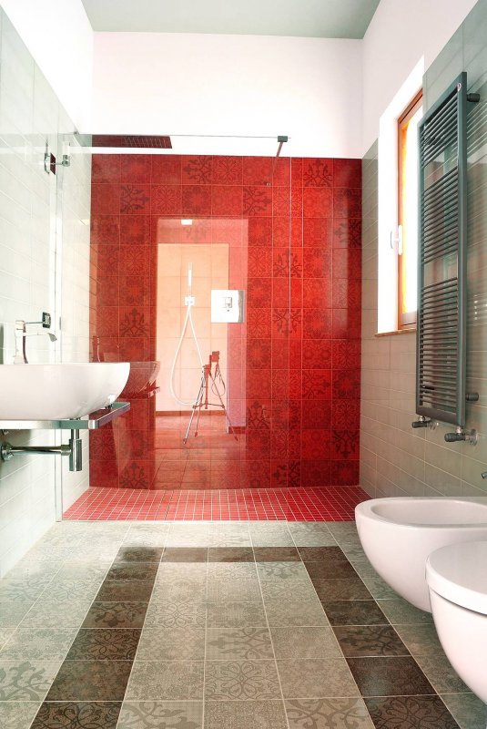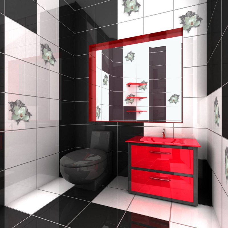 Рассмотрим основные варианты сочетаний с красным при оформлении ванной комнаты.