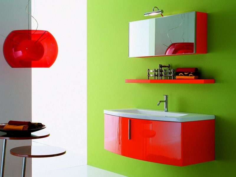 Ванная в красных тонах – не самое лучшее решение для гиперактивных людей (не путайте с экстравертами), лиц с выраженным холерическим темпераментом. Также это не самый оптимальный выбор для меланхоликов, так как расцветка способна их подавлять и раздражать.
