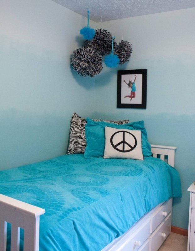 Интерьер комнаты для молодой девушки подчеркнут живописные изображения цветов или цветочных пейзажей, романтические сюжеты, бабочки, грациозные балерины.