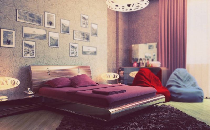 Современный интерьер молодежной комнаты для девушки дополнят фотоснимки с веселыми и легкими для восприятия сюжетами.