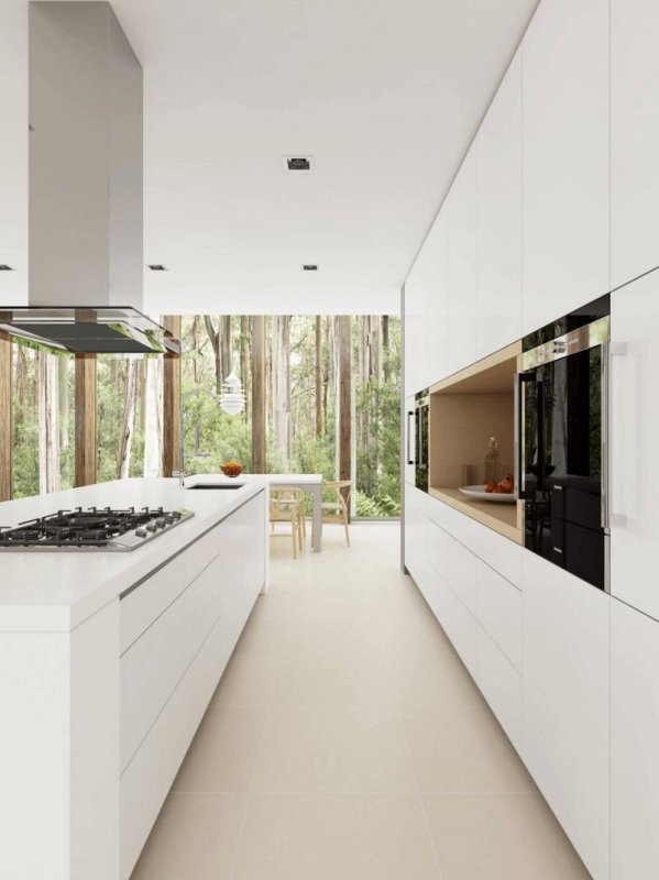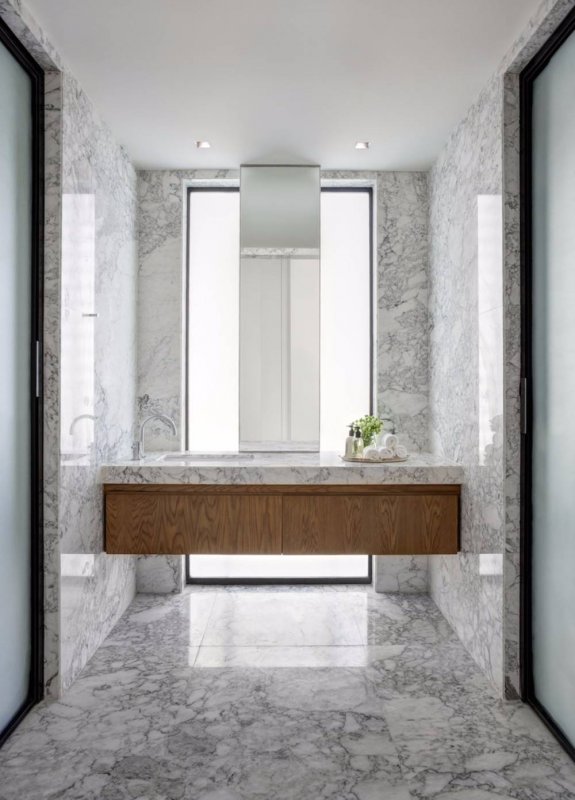 Материалы можно использовать разные: камень, пластик, дерево, стекло, керамика. Главное, чтобы линии были безупречными, а поверхности – без вычурных фактур.