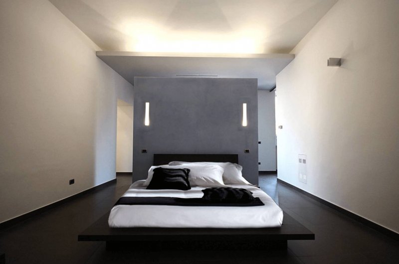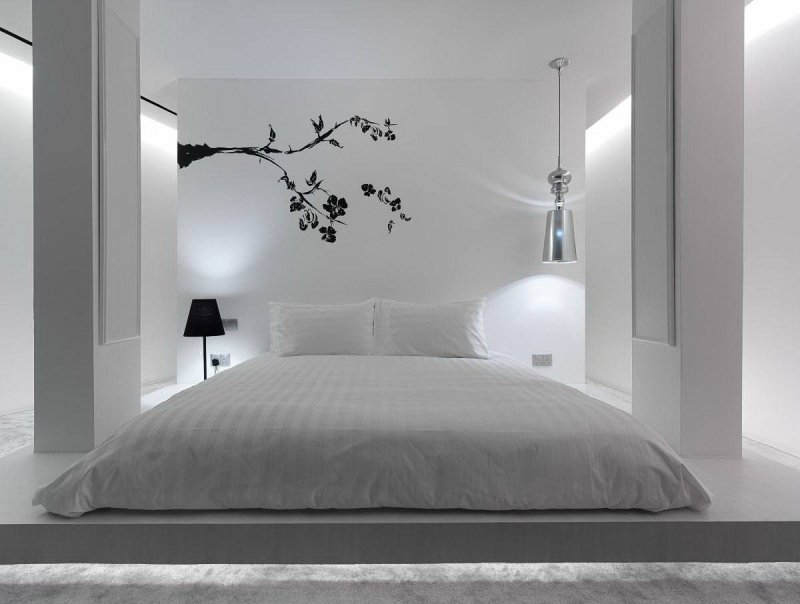 Отсутствие мелкого декора можно обыграть, разместив в помещении один или несколько декоративных элементов среднего или крупного размера. Но такие предметы не должны быть вычурными или с элементами роскоши. Например, интерьер спальни в стиле минимализм подчеркнет абстрактная скульптура или черно-белая картина (фотоснимок).