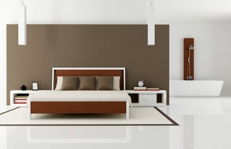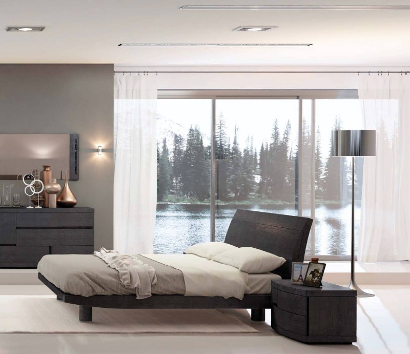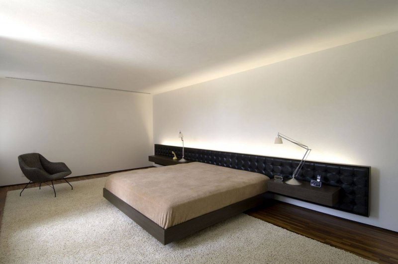 Для спальни подойдут прямоугольные кровати без массивных спинок и изножья.