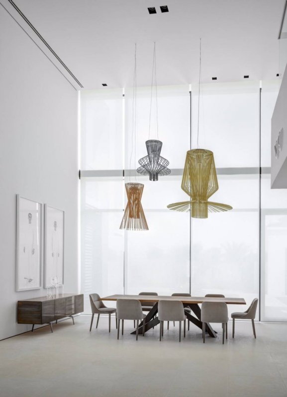 Как уже было сказано в характеристике стиля, в помещении должно быть хорошее освещение. Этого можно добиться, сделав большие окна и правильно подобрав искусственный свет.