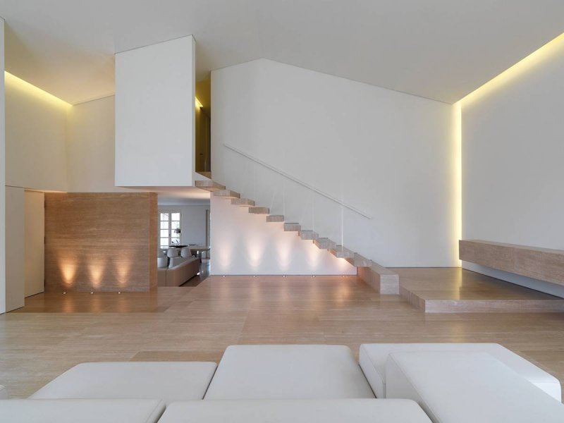 Чтобы минимализм в интерьере дома был выразительней, есть несколько дизайнерских приемов: