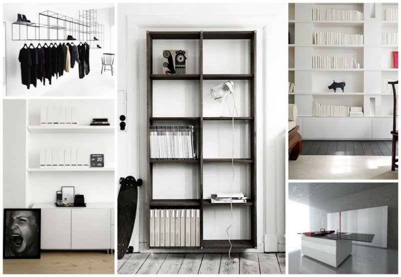 Отдайте предпочтение мебели без открытых полок. Так, все предметы можно спрятать за дверками мебели. Отличное решение шкаф-купе.