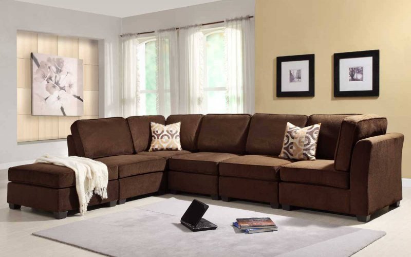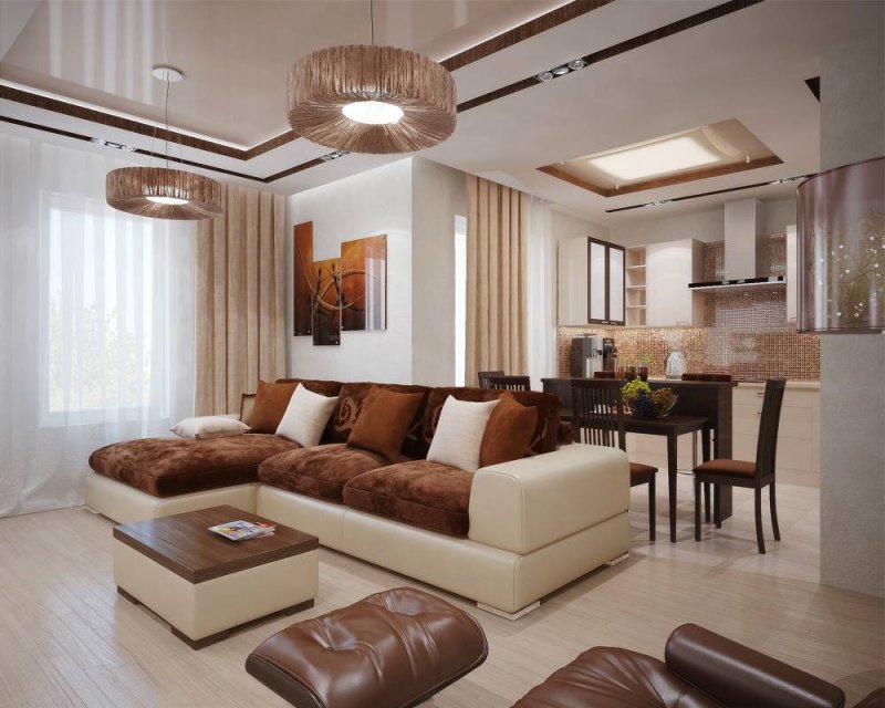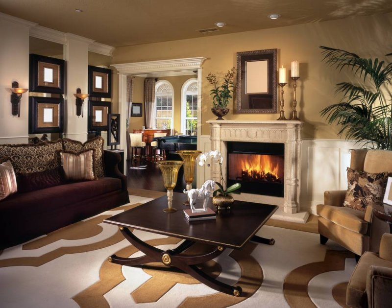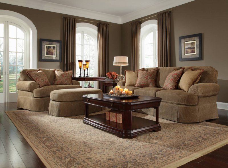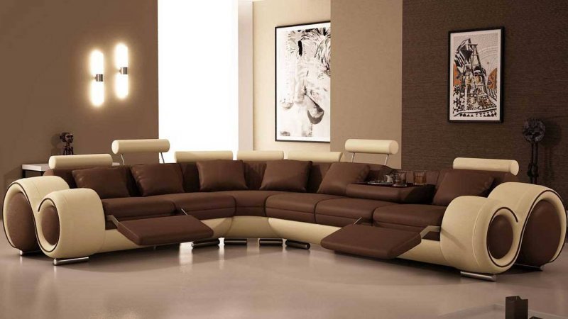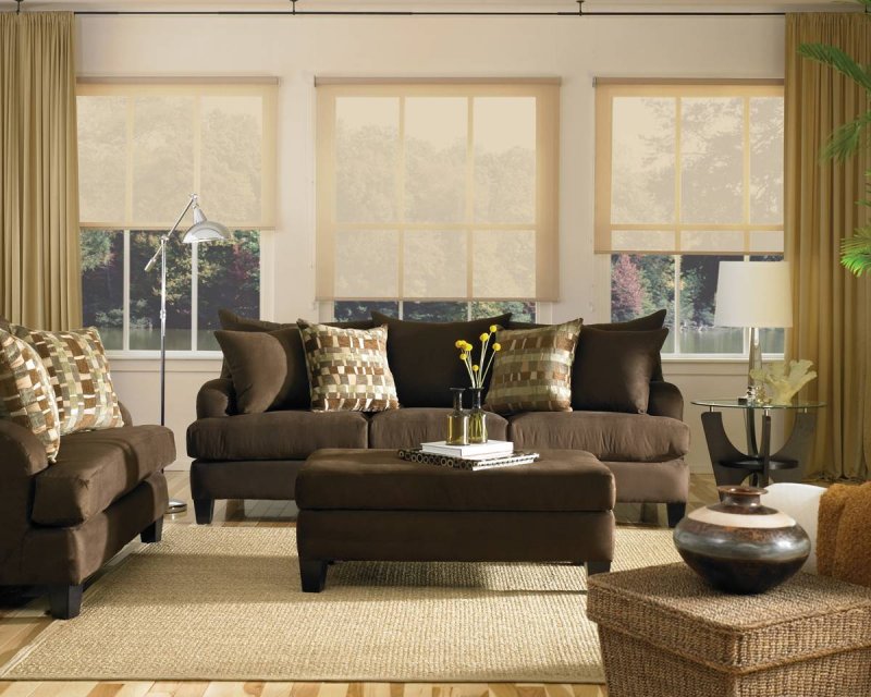 Гостиную в коричневых цветах дополнит белый, синий, розовый, голубой.