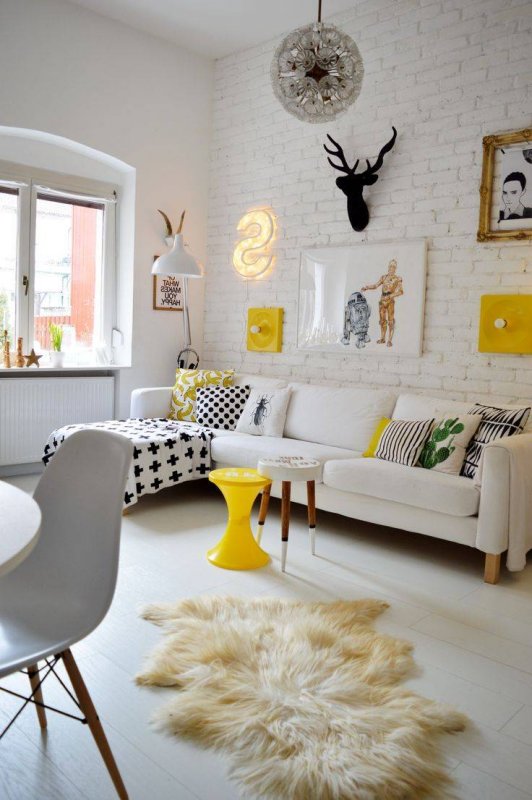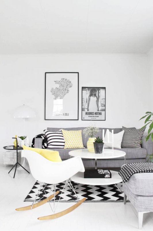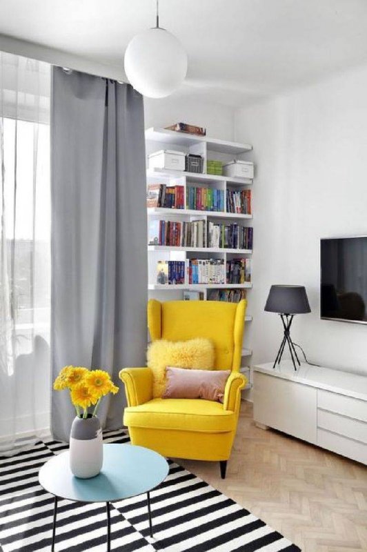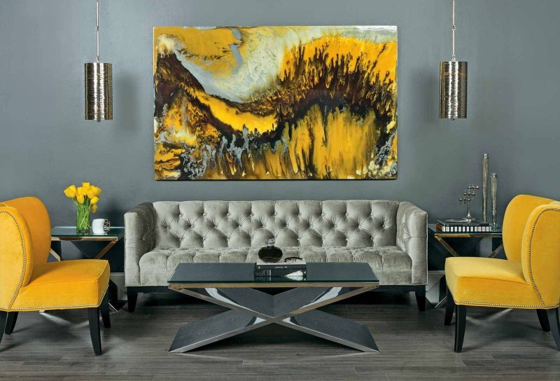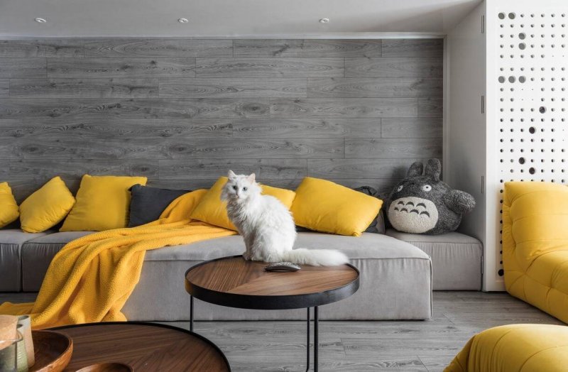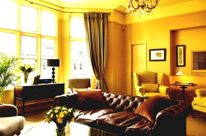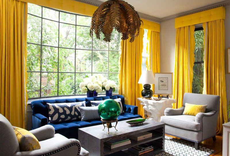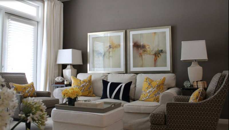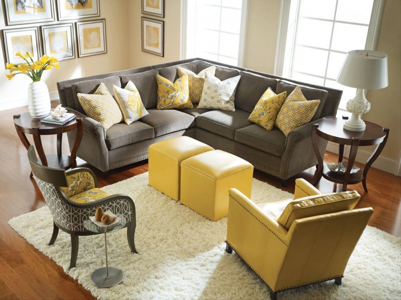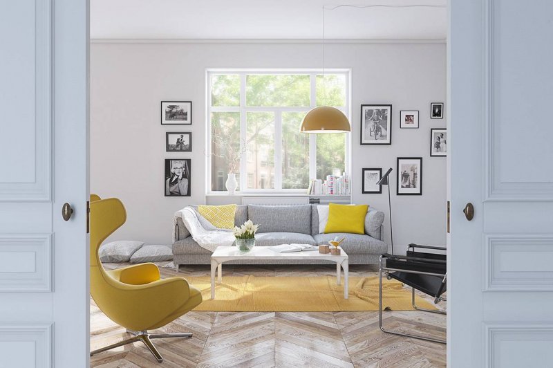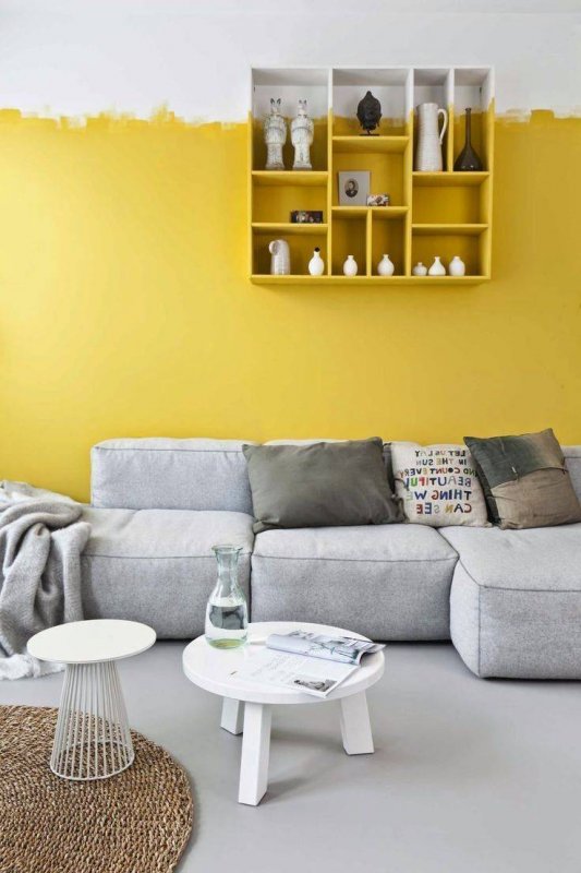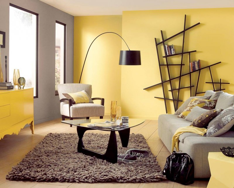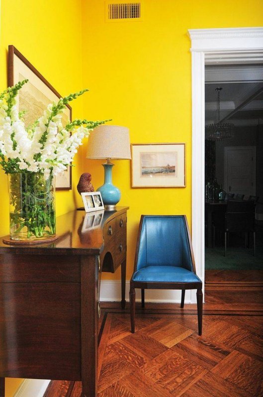 Он улучшает настроение и пробуждает положительные эмоции. С его помощью можно создать как эффектные контрасты, так и комбинации из похожих оттенков. Чаще всего желтый используется в равноправном сочетании с другим тоном.