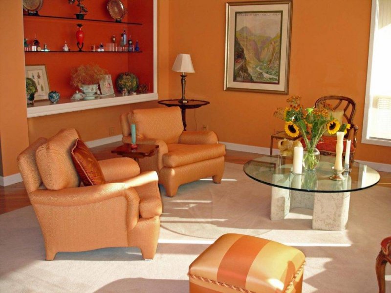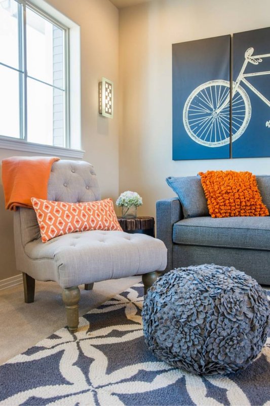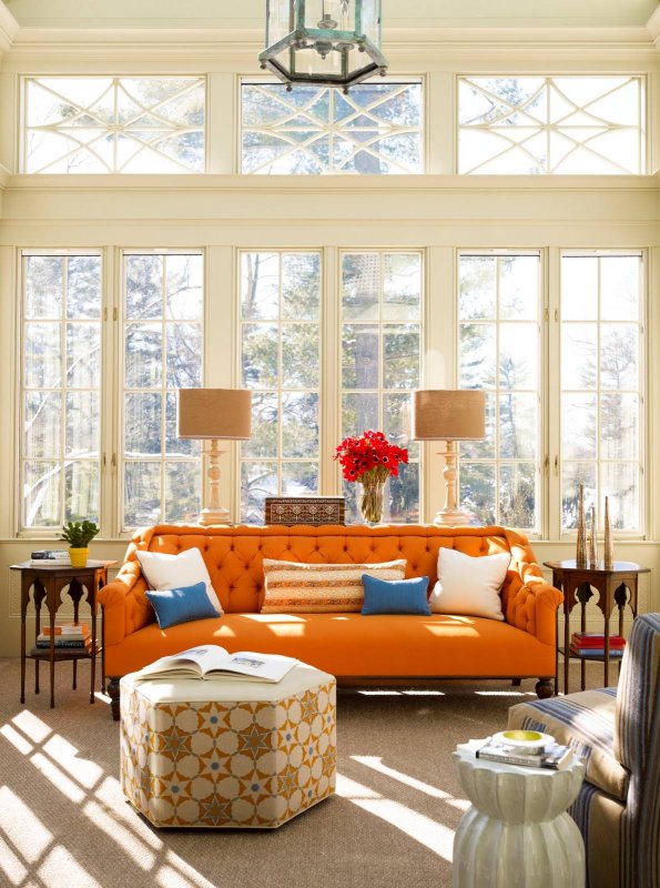 Как и солнечный желтый, оранжевый излучает тепло и обаяние лета. Он сочный, энергичный и подпитывает зарядом бодрости и энергии. Его также лучше всего использовать в дуэте с другой расцветкой (поспокойней).