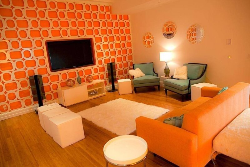 Актуальное и выигрышное решение. Персиковый создает легкую для восприятия обстановку и вносит теплоту и комфорт. У многих он ассоциируется с сочными фруктами и одноименными сладостями, которые многим знакомы еще с детства. Дополнит персиковый тон вишневый, белый, коричневый, песчаный.