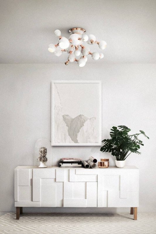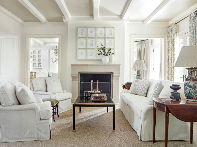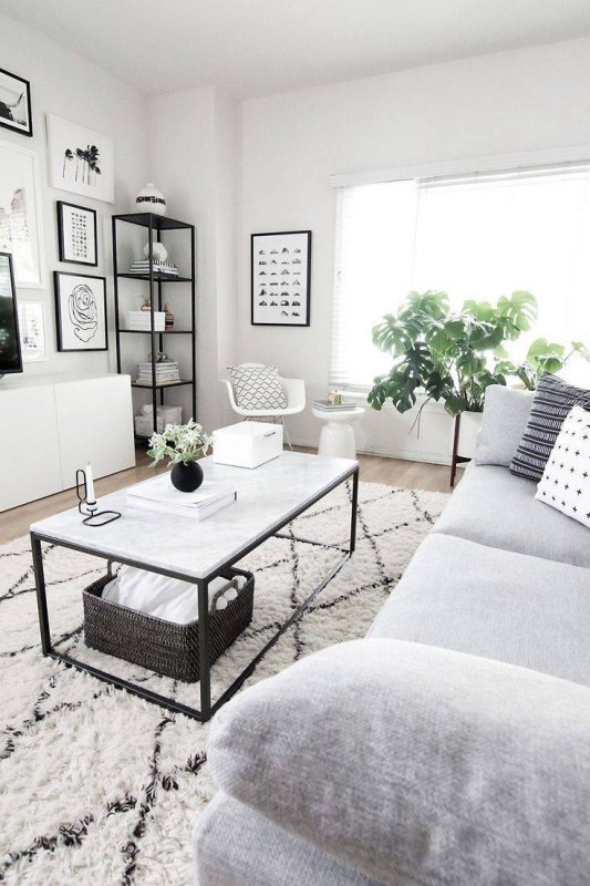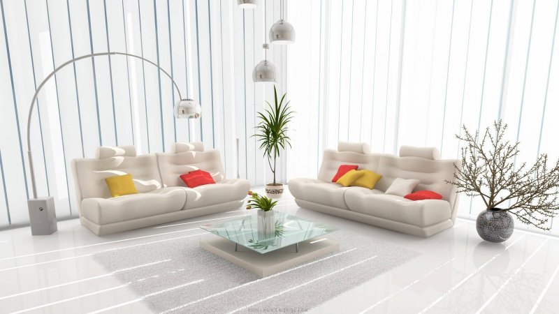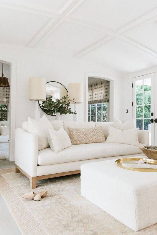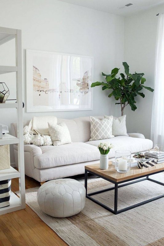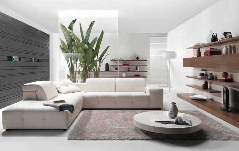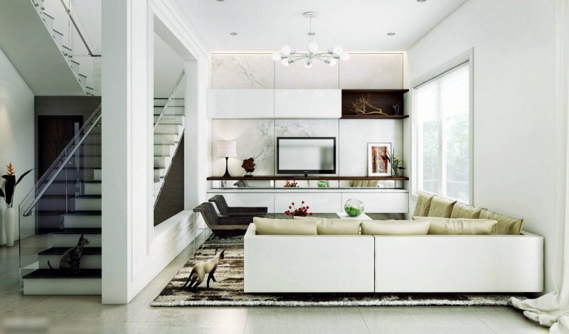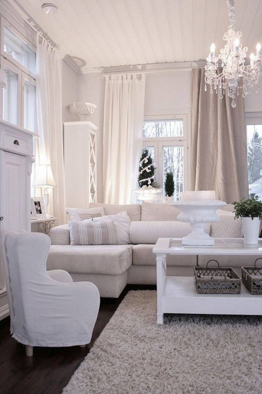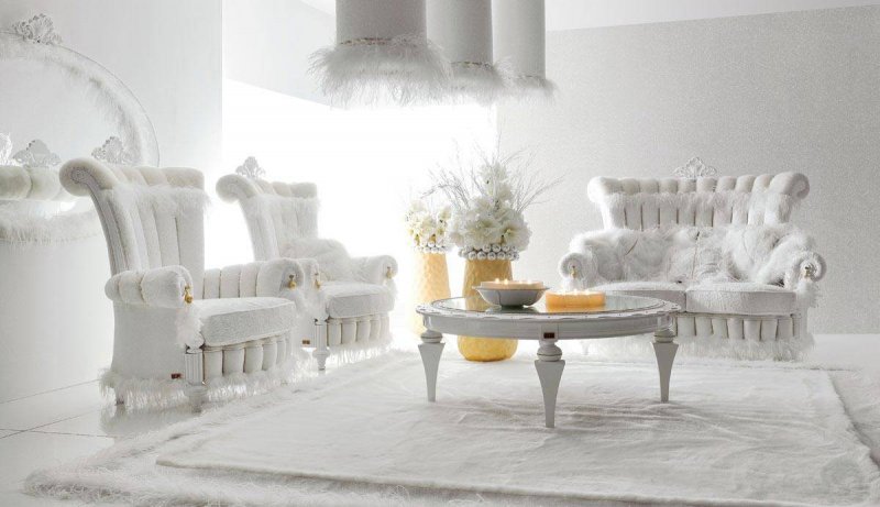 Гостиная в белом цвете смотрится изящно. Такое помещение будет дарить всем чувство свежести и чистоты.