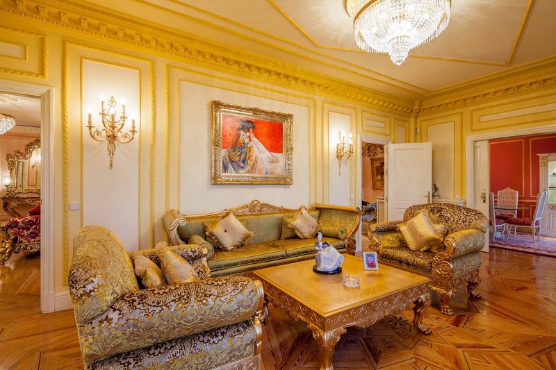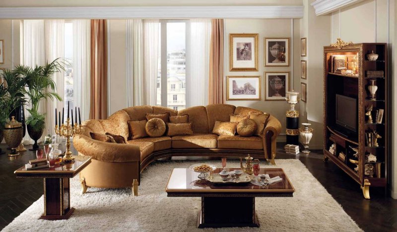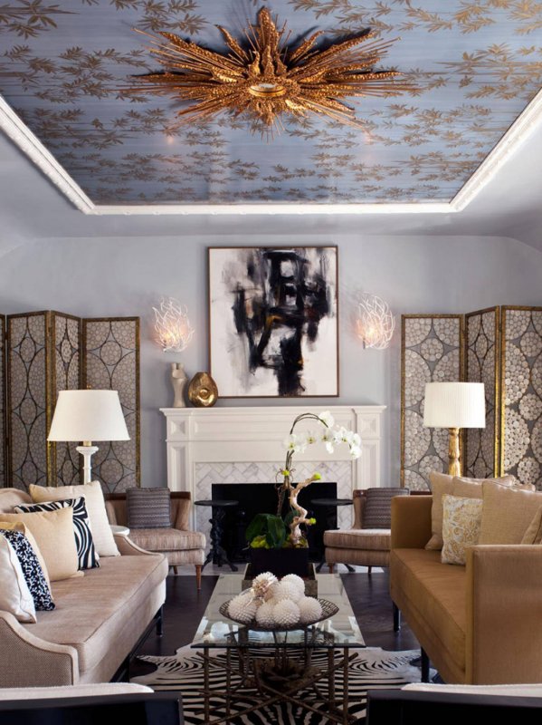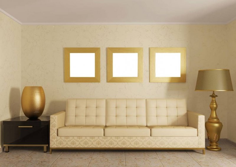 Но используя золотистый, важно знать меру и правильно выбирать его насыщенность, чтобы помещение не стало безвкусным и не ассоциировалось с цыганскими баронами. Комнату можно оформить разными оттенками – от насыщенного золотого (не доминирующего) до песчаного.