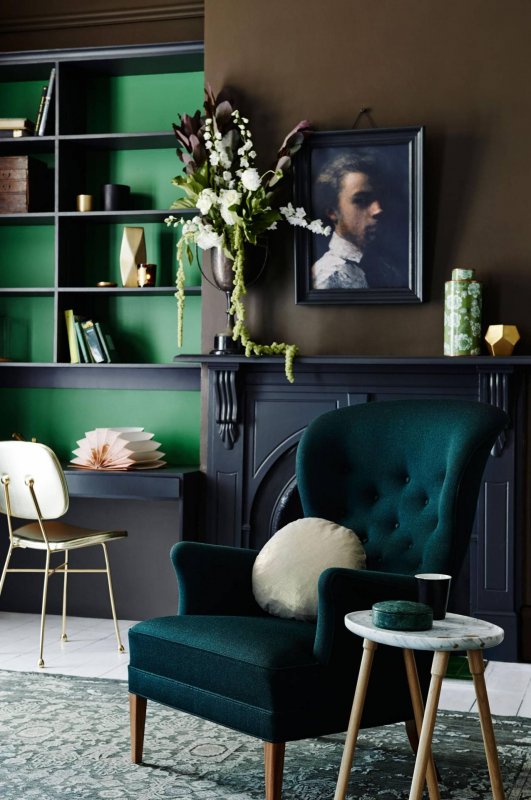 Но реализовывать его стоит в просторной и достаточно освещенной комнате. Его можно использовать и в дуэте с другой расцветкой, и в качестве выразительных вкраплений.