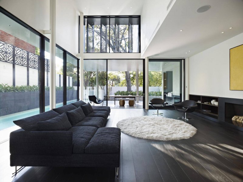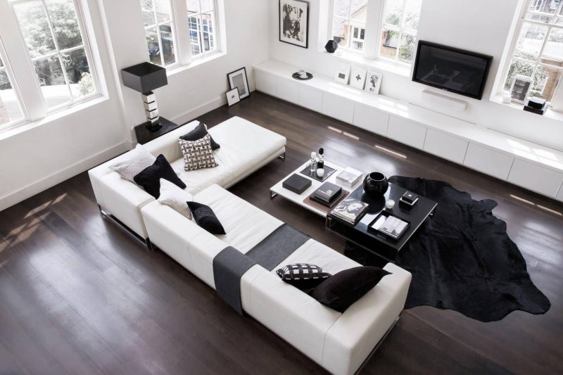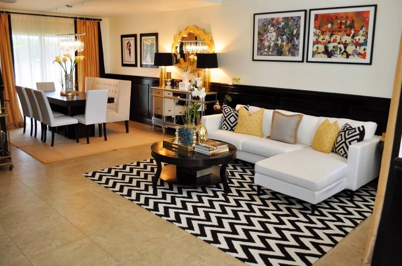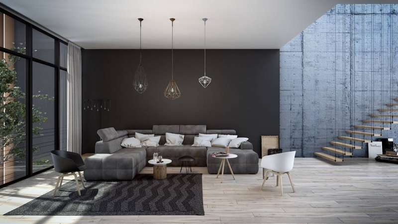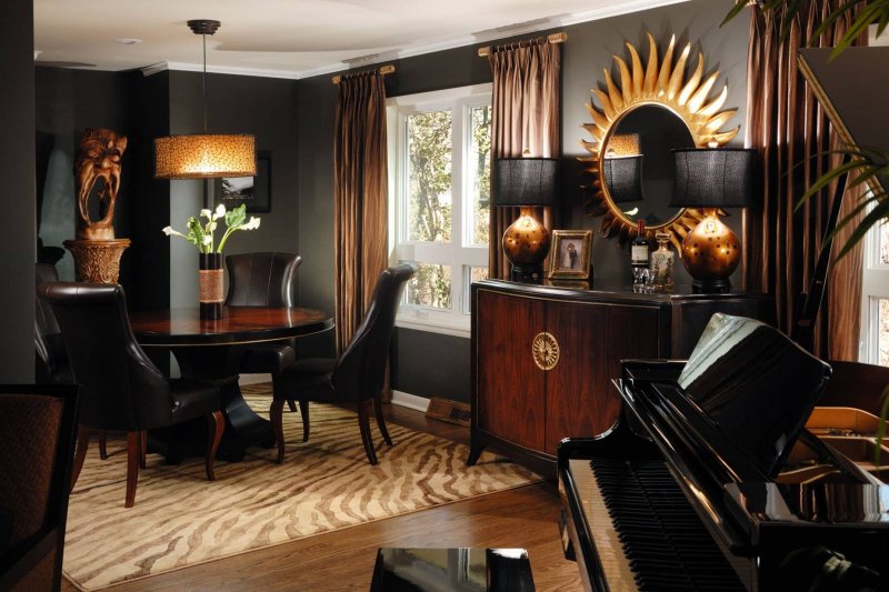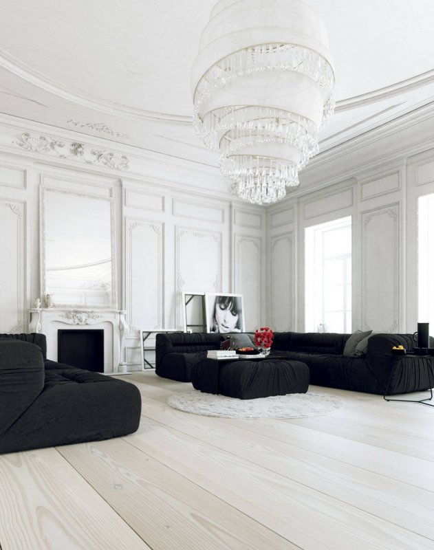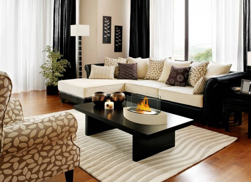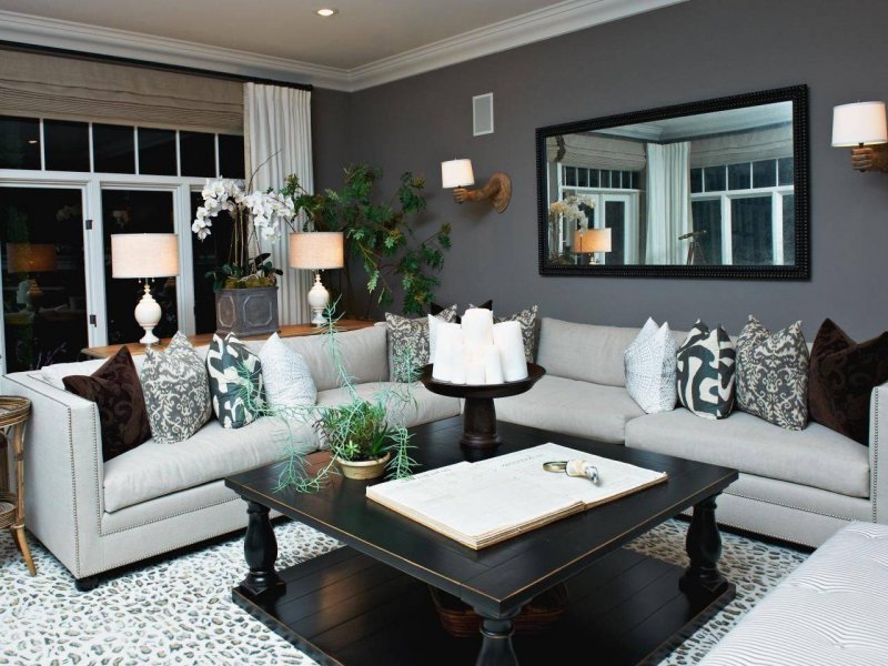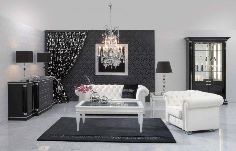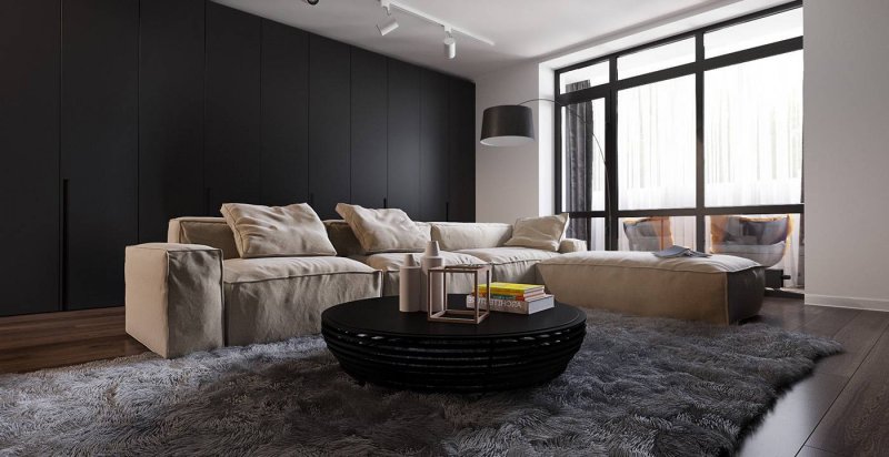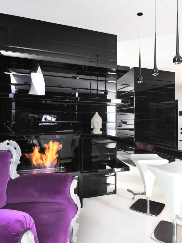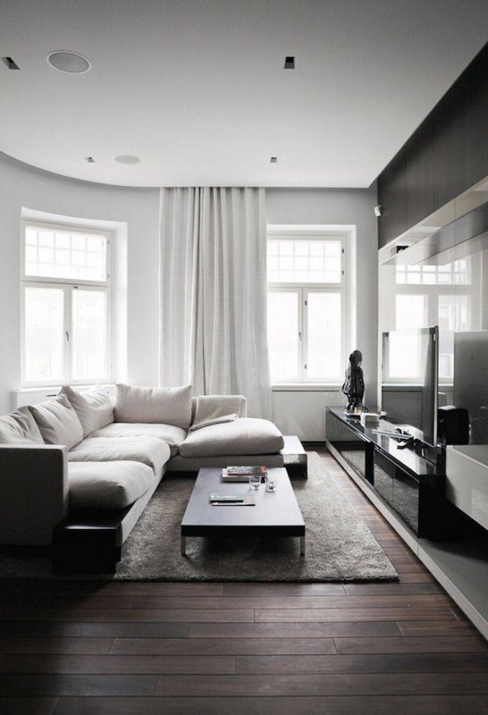 Отбросьте стереотип, что гостиная в черных цветах будет выглядеть мрачно и уныло. В умелых дизайнерских руках черный будет олицетворять шик, безупречный вкус и элегантность.