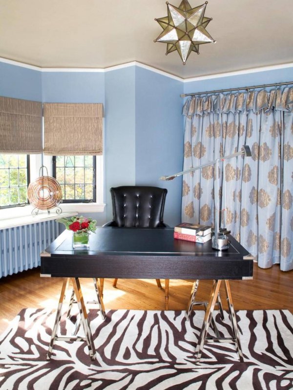 Кабинет в голубом цвете легкий для восприятия, он дает ощущение бодрости, свежести и способствует появлению новых идей. Голубой одинаково хорошо смотрится в офисах разной площади.