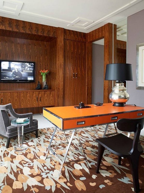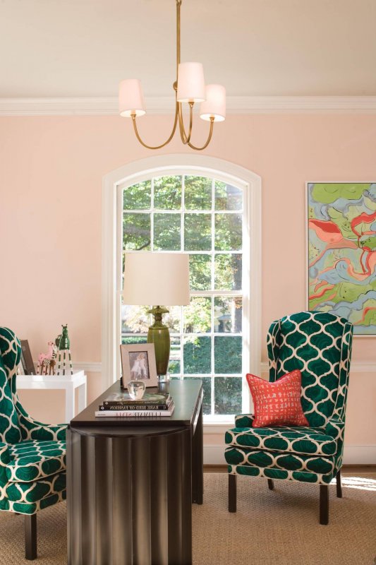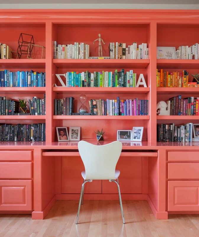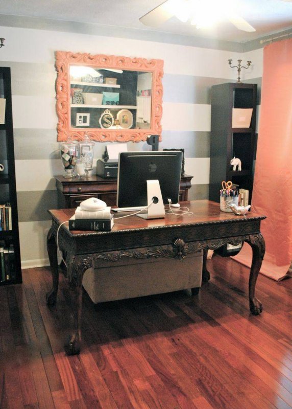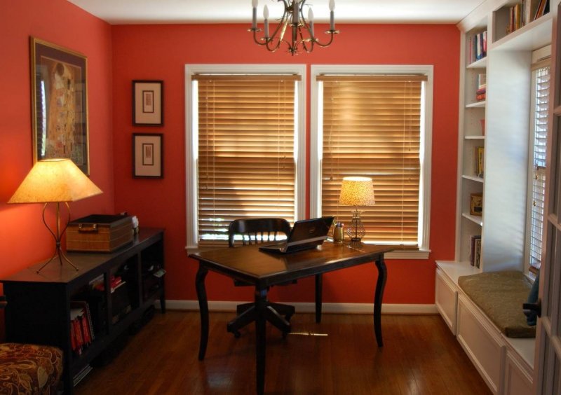 Персиковый приятный для глаз, он способствует продуктивности и улучшает рабочую атмосферу. Классический современный кабинет персикового цвета – это светло-персиковые стены, более насыщенные шторы или жалюзи в сочетании с белым потолком и светло-коричневым полом.