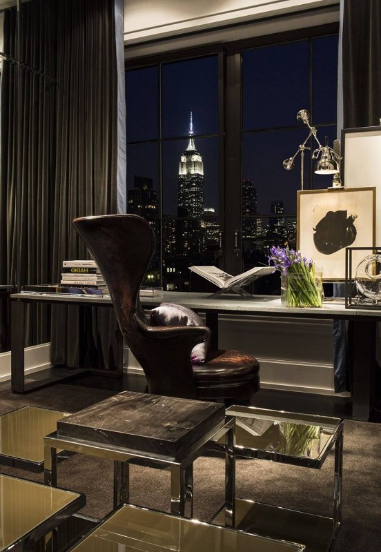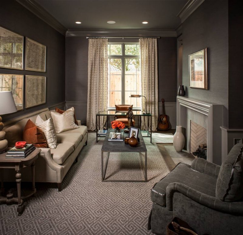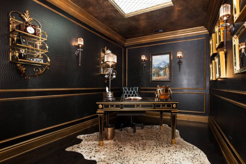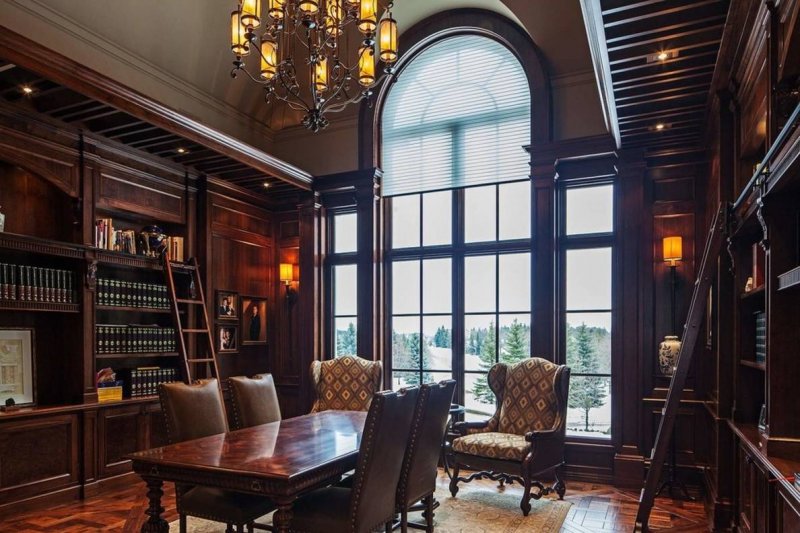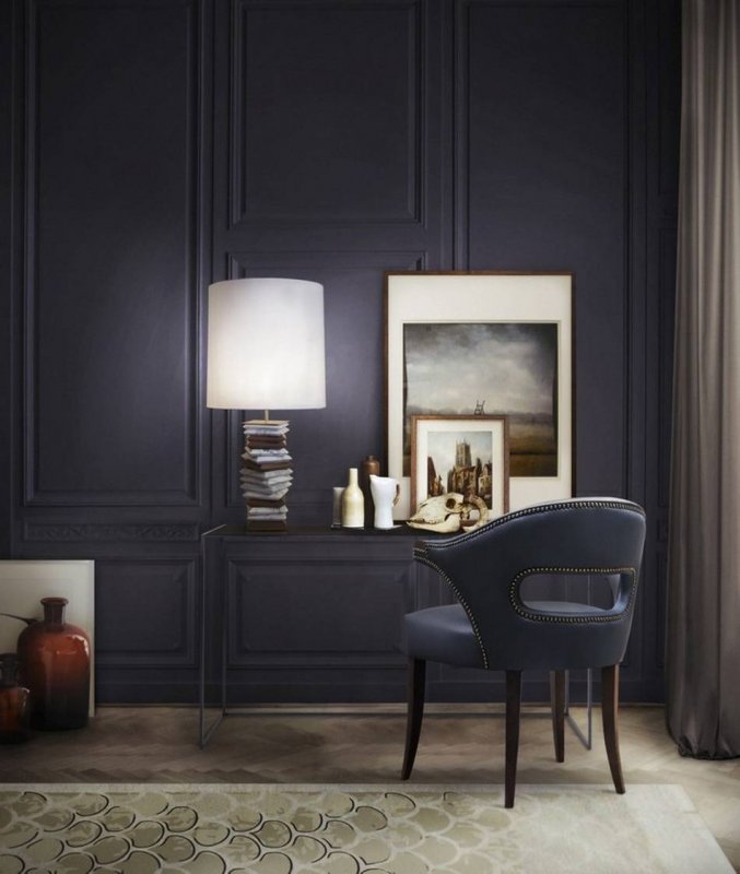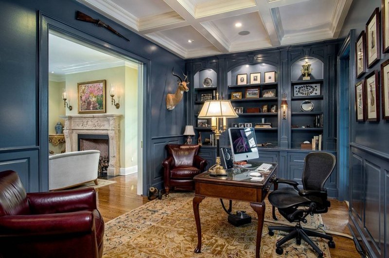 Темные цвета в интерьер кабинета выбирают, если он хорошо освещен, так как они зрительно забирают пространство.