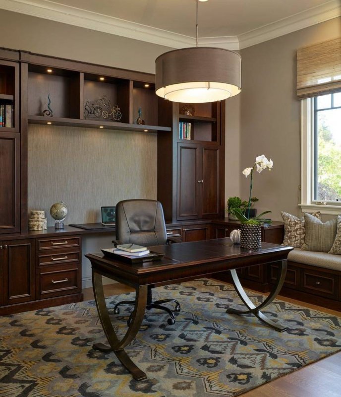 Правильно подобранное сочетание цветов в интерьере кабинета для кого-то станет способствовать творческим успехам и креативу, для кого-то – сосредоточенной работе над важным деловым проектом с точными расчетами. Также гармоничная цветовая гамма будет располагать посетителей кабинета к конструктивным диалогам и положительным исходам переговоров.