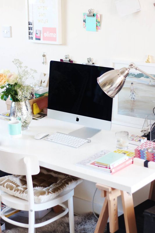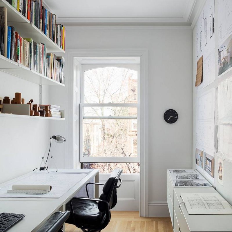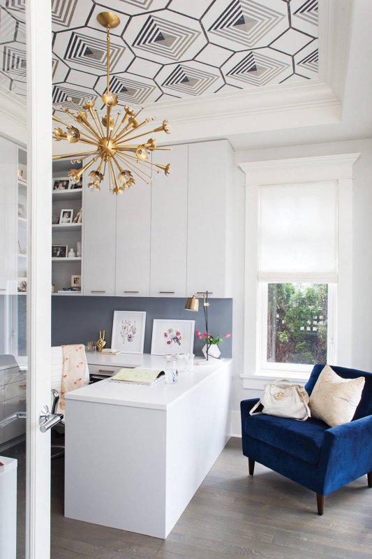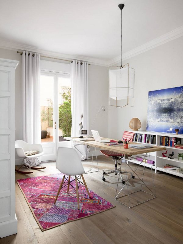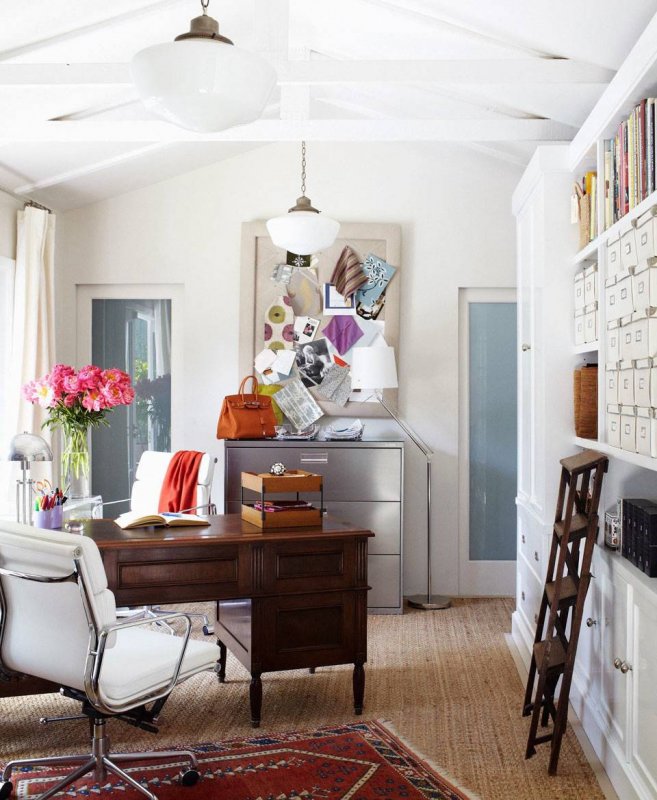 Яркий пример – кабинет Анны Винтур (главный редактор журнала Vogue). Сочетается белый практически со всеми расцветками, но лучше всего с пастельной гаммой, серым, красным и голубым.