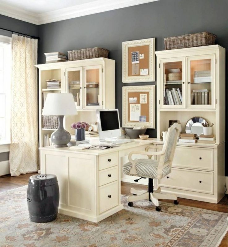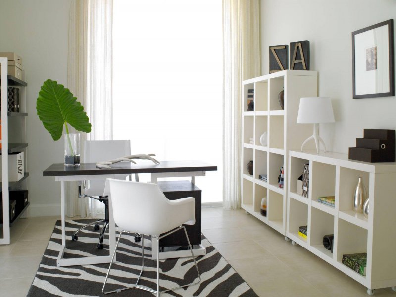 В кабинете в белом цвете будет комфортно находиться, если он небольшого размера. Тогда он создаст ощущение уюта и свежести. Белый символизирует надежду, отгоняет желание сдаваться в непростой ситуации и настраивает на рабочий лад. У многих руководителей кабинеты именно белые.