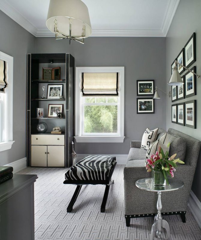 Серый ассоциируется с офисной сдержанностью и дресс-кодом. Классический серый может нагонять сон и уныние. Поэтому если вы решили оформить кабинет в серых цветах, сделайте главной светло-серую расцветку или близкую к эффектному серебристому тону. Оптимальные комбинации: белый, естественный зеленый, алый, бежевый.