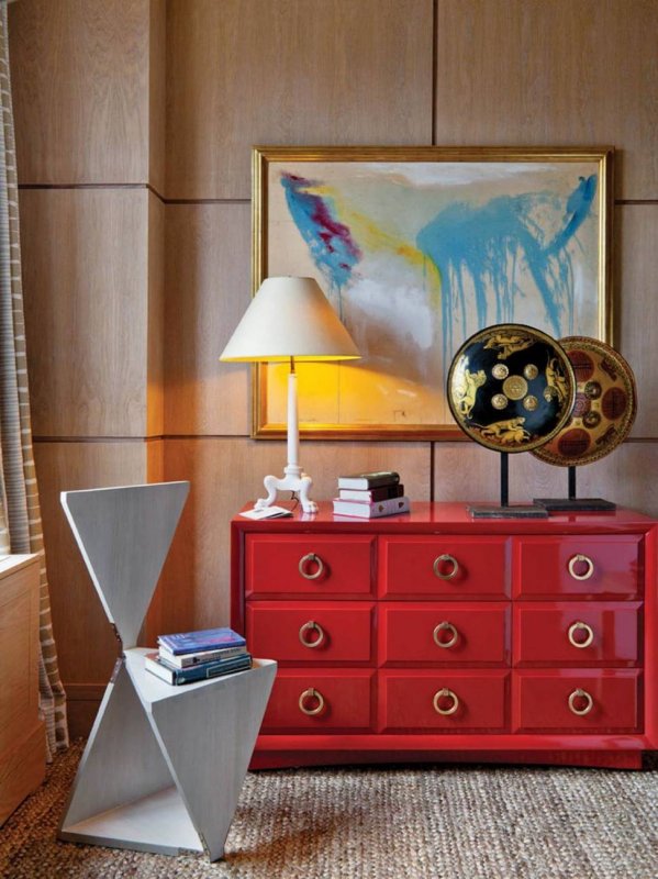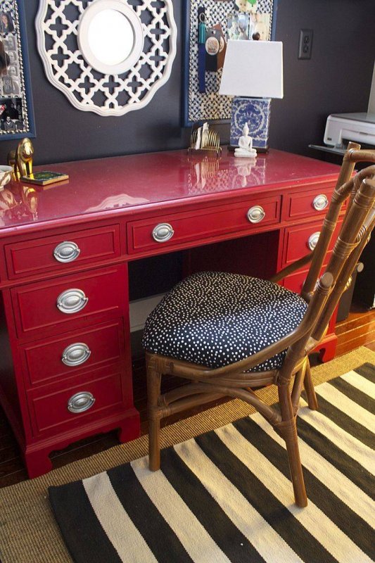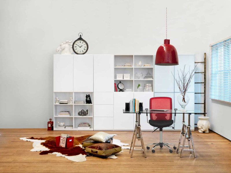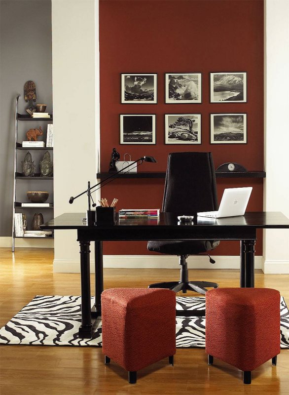 Сочетается в офисе красный с белым, коричневым, персиковым.