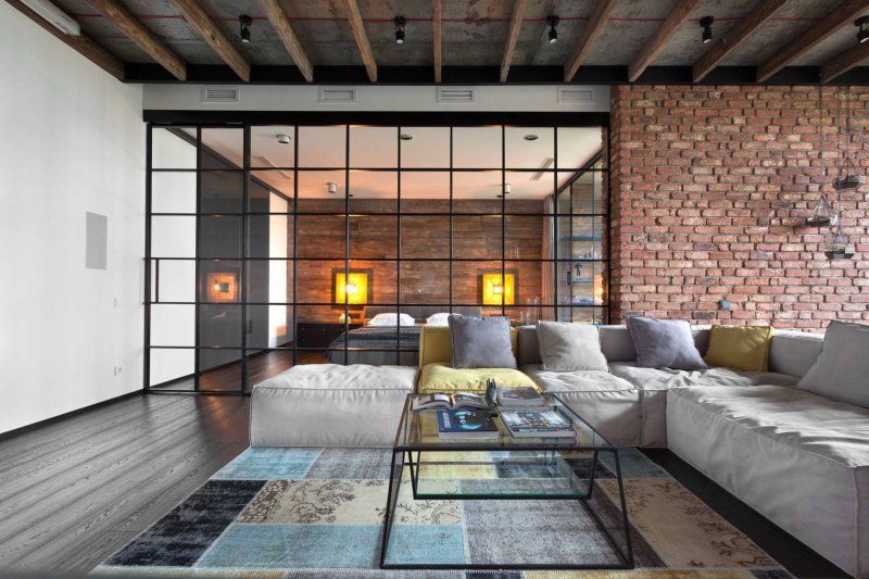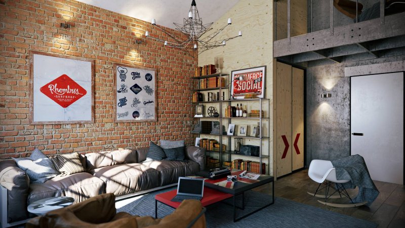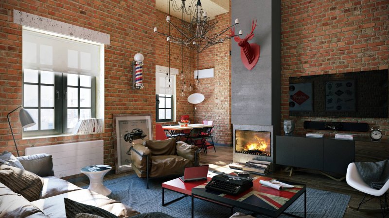 Комбинация из камня, дерева и металла в оформлении – атрибут тематики лофт. Здесь легко и непринужденно смешиваются кирпичная кладка, прозрачные перегородки, бетонные стены, стеклянные лампы, кованые люстры, алюминиевые профили и стальные стеллажи.