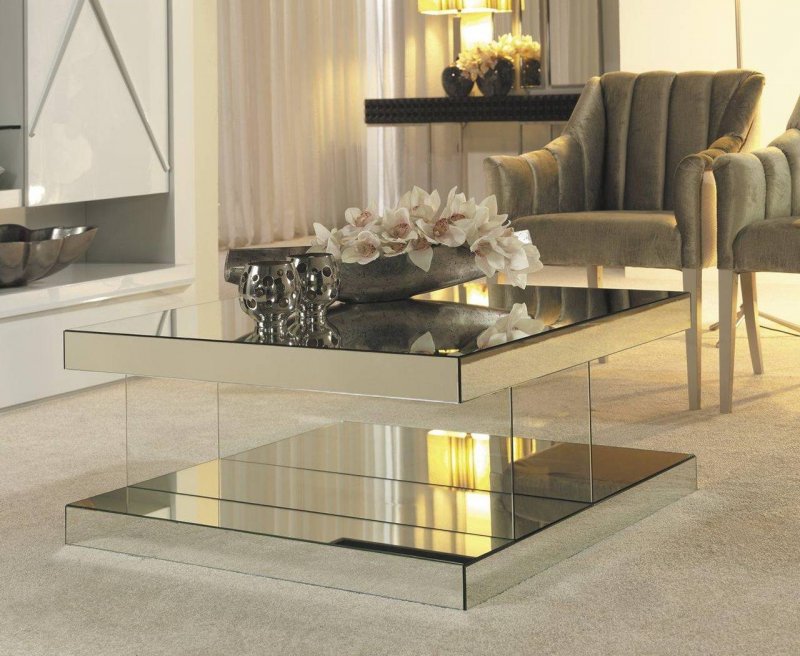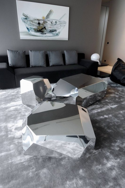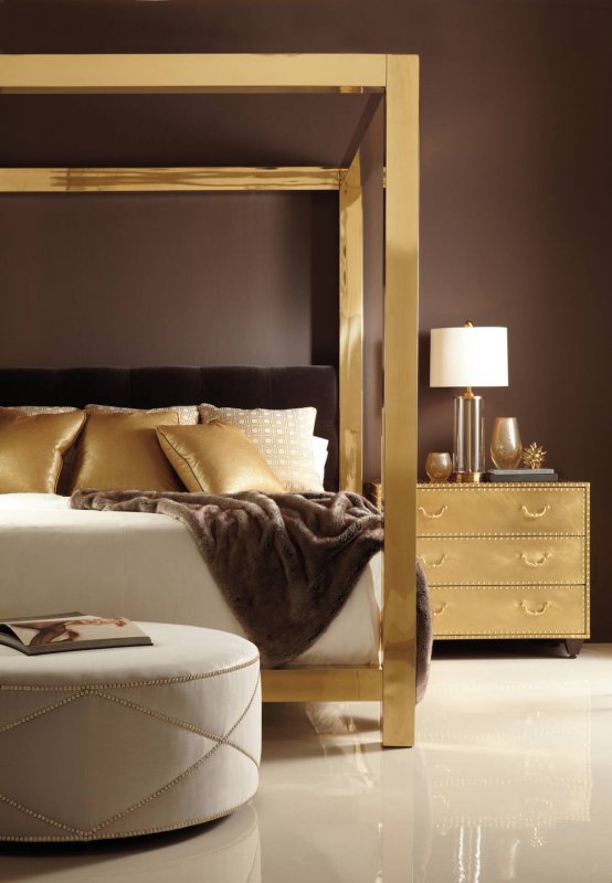 Мебель с металлическим отливом, хромированные столики – отличное дополнение к современной комнате. Золотистая латунь внесет теплый акцент.