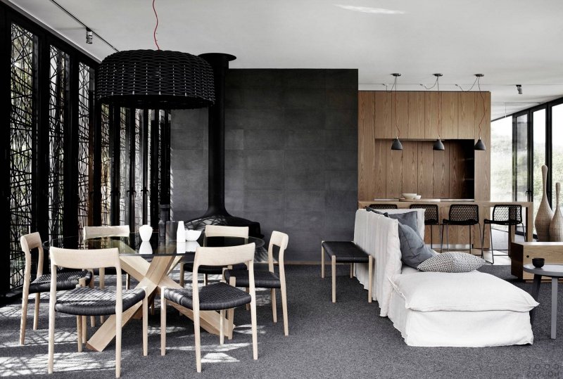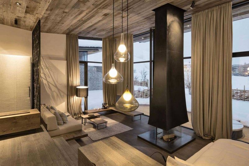 Для холодной стальной фактуры древесина – лучший материал-компаньон, который несет природное тепло. Из него выполняют напольное покрытие, мебель, настенные панели. За счет контраста фактур и оттенков можно получить выразительный, рельефный дизайн.