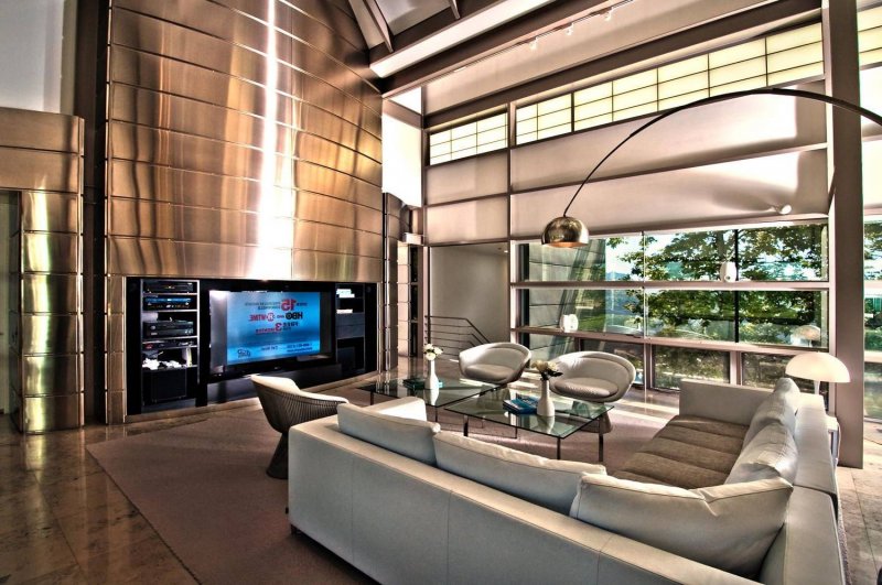 Если комната просторная и хорошо освещенная – смело демонстрируйте холодный блеск, но дополните его теплыми фактурами текстиля и древесины. Если площадь небольшая – стоит обойтись лишь двумя-тремя декоративными акцентами из стали.