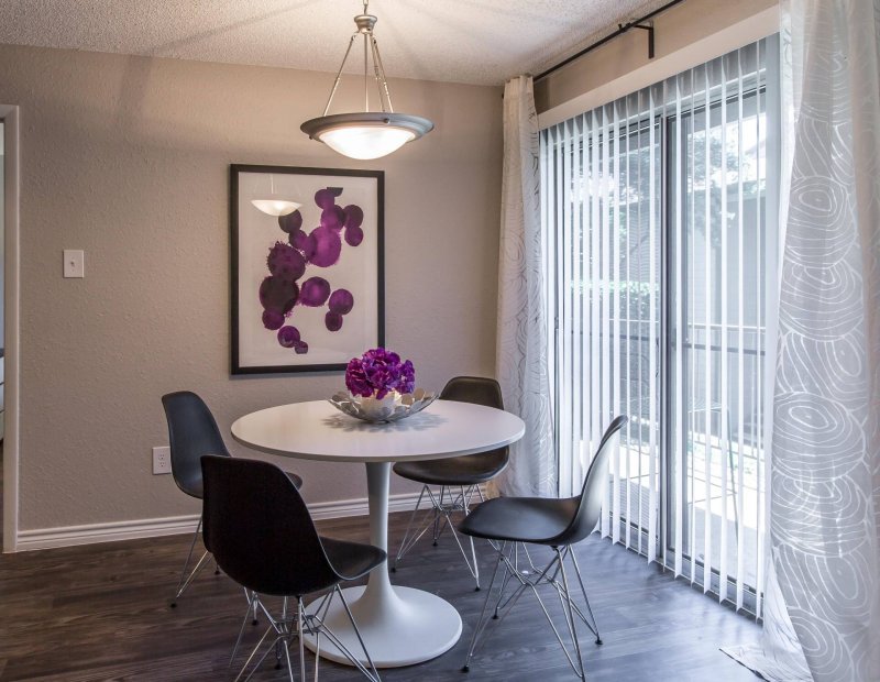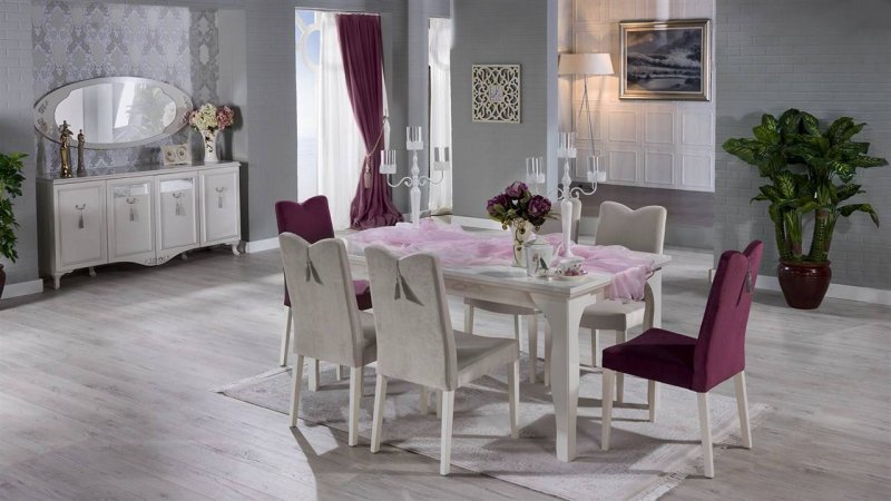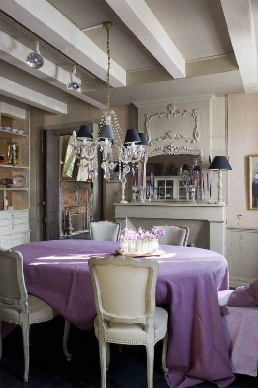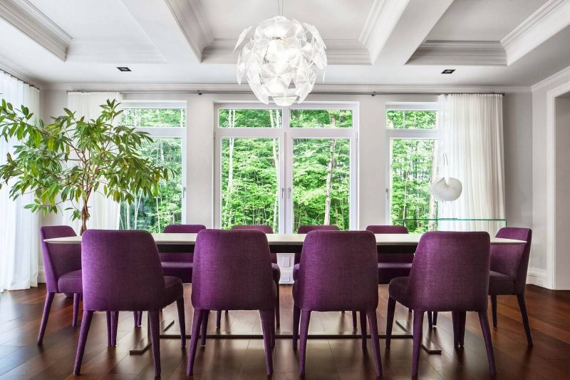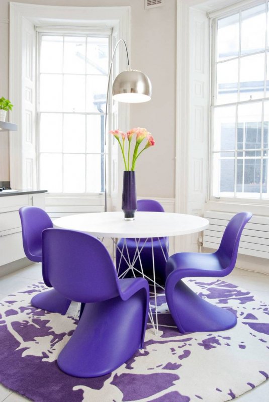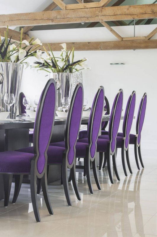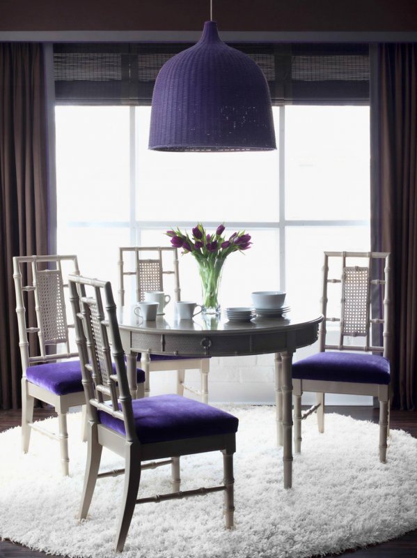 Еще издавна фиолетовый цвет считался царским, так как нередко использовался в интерьере дворцов. Он придаст столовой шик и элегантность. Однако важно с ним не переусердствовать.