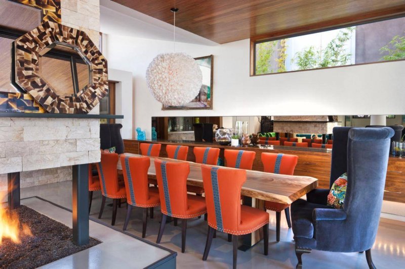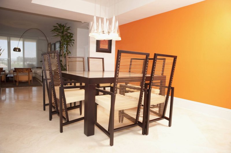 Столовая в оранжевом цвете – популярное и современное решение. Оранжевый, как и желтый, дарит ощущение лета, ассоциируется со спелыми фруктами и пробуждает аппетит.