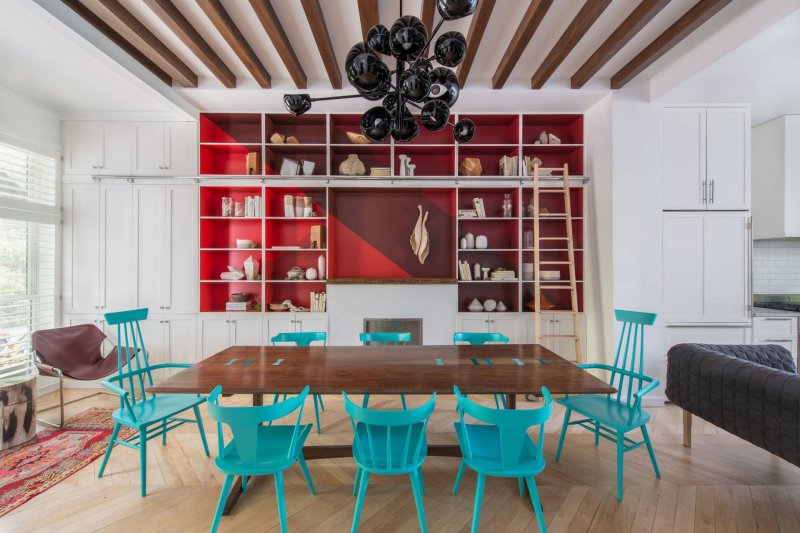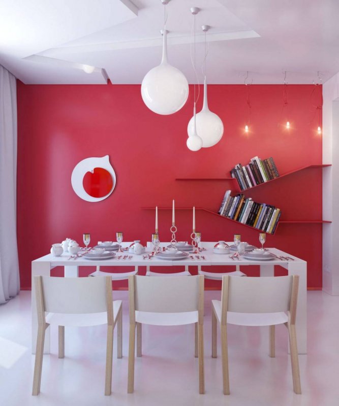 Если вы думаете, в какой цвет покрасить столовую в современном стиле, чтобы она была выразительной, выбирайте цвет маджента. Но, как и в случае с другими яркими и насыщенными тонами, не делайте его главным, а сочетайте, лучше всего с черным, серым или белым.