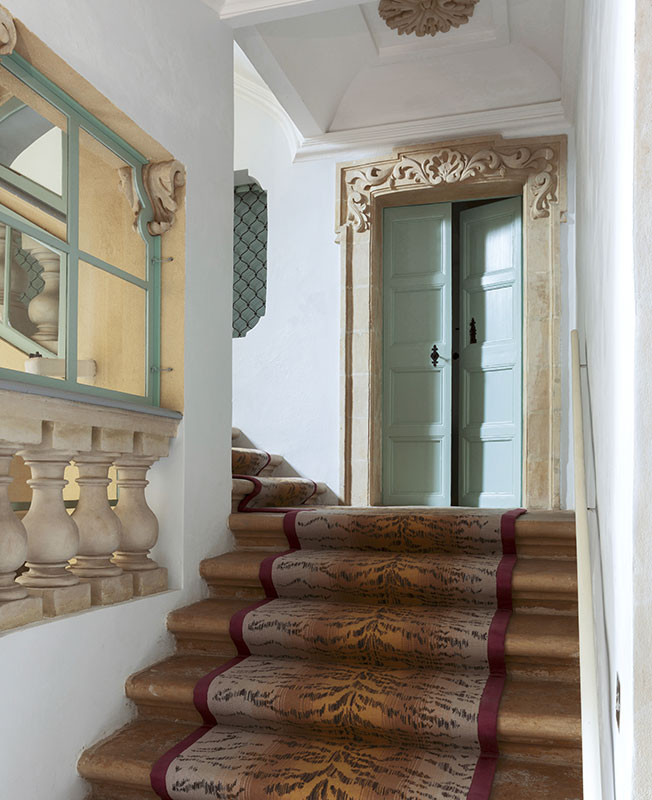Парадную лестницу, выполненную из местного известняка, Султана покрыл ковром с тигровым принтом дизайна легендарного декоратора Мадлен Кастен: «Он нравится всем, кто приходит ко мне в гости».