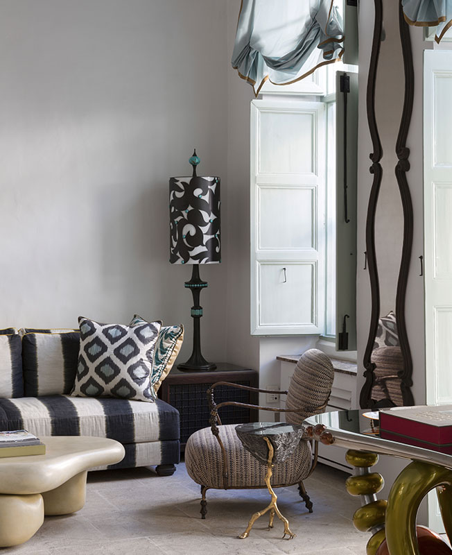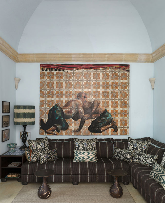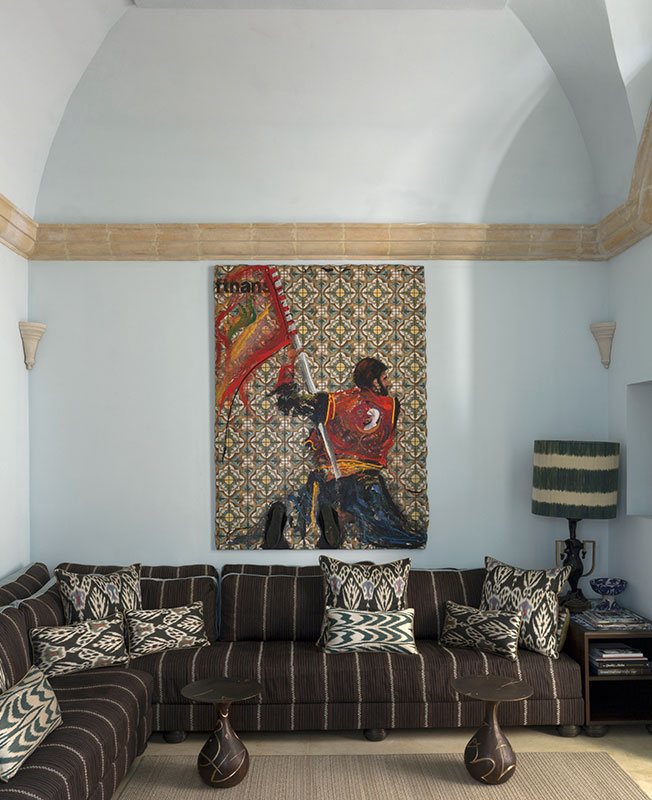 Как я обычно работаю? Смотрю на здание, потом — на клиента и его образ жизни. Но ведь в данном случае клиентом был я сам! Мне нравятся ткани Dedar and Hermes — из них предстояло выбрать такие, что хорошо работают при разрушительно-ярком солнце Мальты и подходят к основе XVI века. Я люблю фактуры больше, чем орнаменты: у меня есть коллекция современного искусства, и на фоне орнаментов она потерялась бы. Арт чрезвычайно важен в этом интерьере, он привносит в него динамику и жизнь — я не хочу существовать в прошлом.