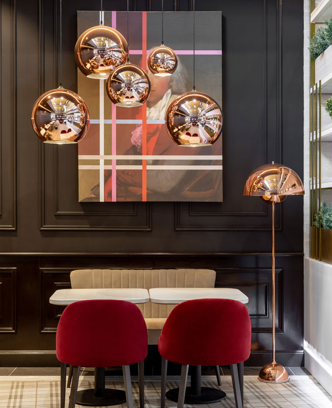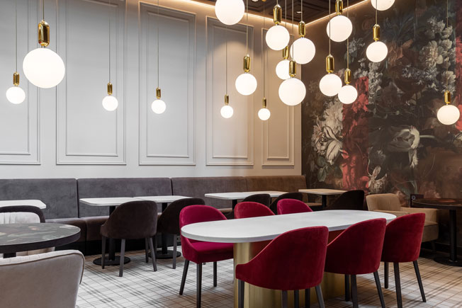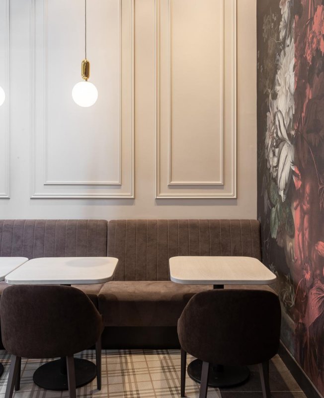 Эти стилистические требования и колористика кардинально не совпадали с видением руководства кофейни о новом проекте. Так возникло решение доработать уже утвержденный проект и привнести в интерьер элементы конструктивизма.