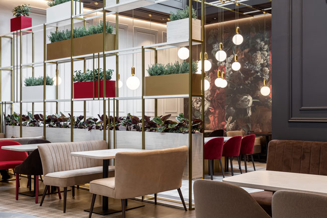 Оказалось, что интерьер терминала запланировали в стиле начала XX века. Требование главного архитектора аэропорта было в том, чтобы в каждом арендуемом помещении отражался русский конструктивизм. В руководстве к проектированию была обозначена определенная цветовая палитра: белый, черный, красный и золотой. Кроме того, было озвучено немало стилистических ограничений.