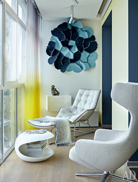 Лоджия в этой московской квартире была, по мнению дизайнера, бесполезна: при десятиметровой длине и полутораметровой ширине на ней, неотапливаемой и с единственным выходом из гостиной, заниматься было бы нечем. Присоединив и утеплив лоджию, открыв комнаты свету, получили видовую квартиру с панорамным остеклением по всему фасаду.